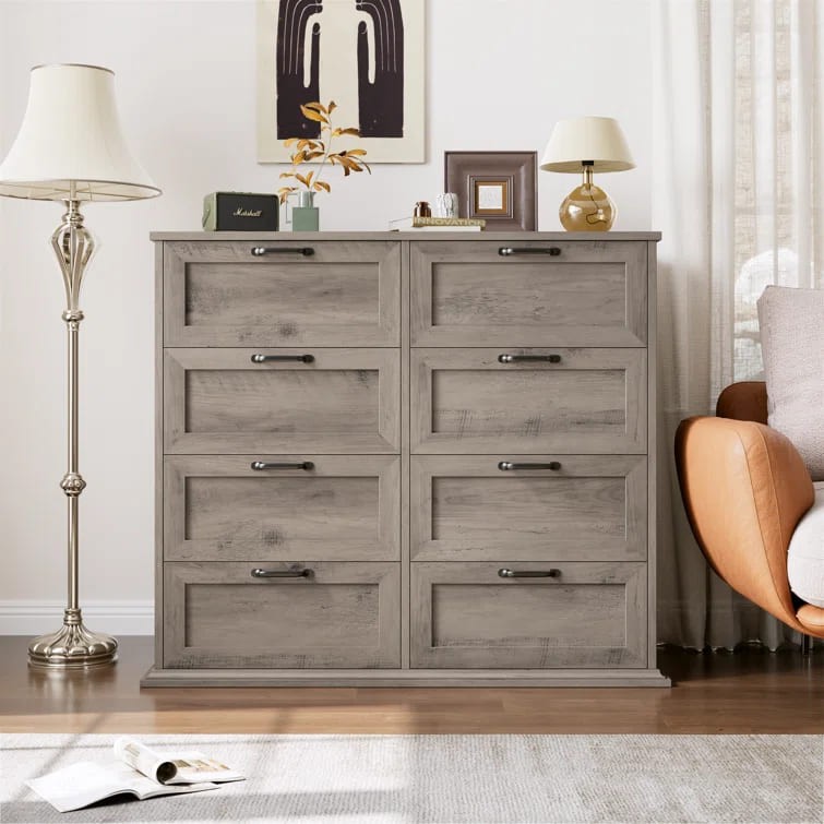 تتميز الوحدة بتصميمها الأنيق مع مقابض سوداء تضفي لمسة من التباين العصري على التصميم. تحتوي على ستة أدراج واسعة موزعة على صفين أفقيين، مما يوفر مساحة تخزين كبيرة ومنظمة تناسب الاحتياجات المختلفة.