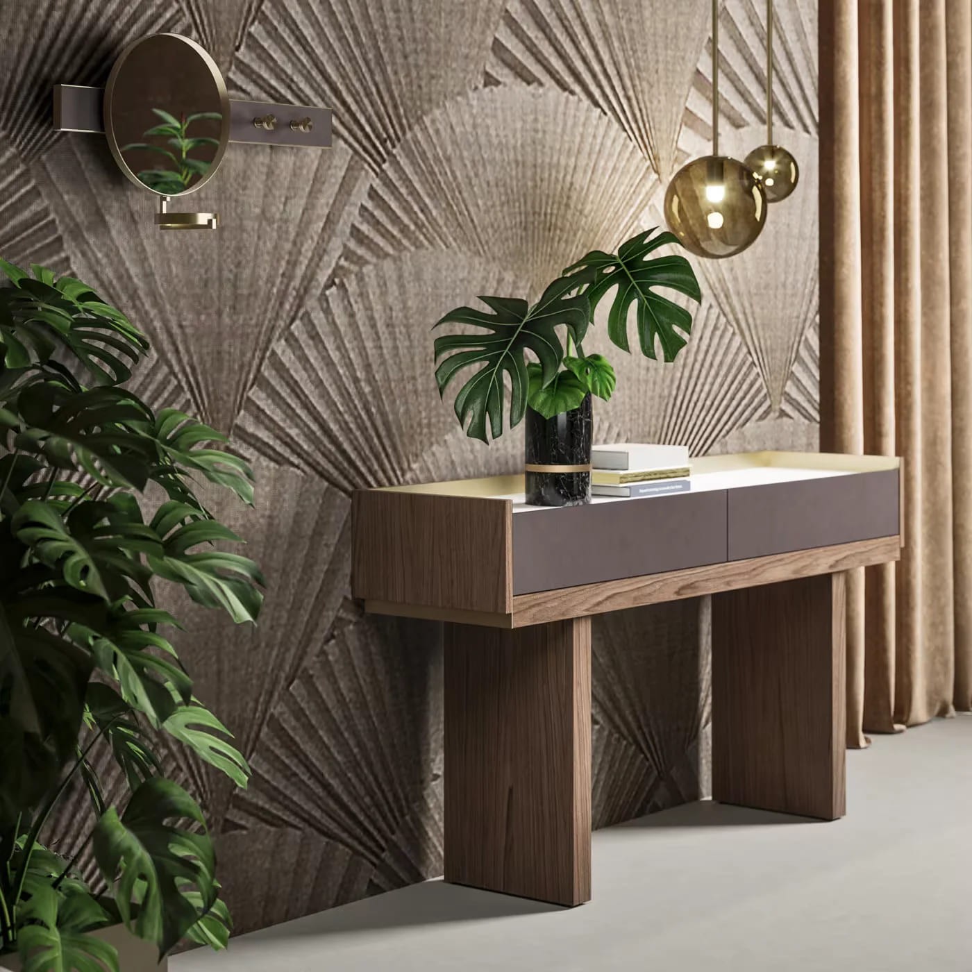 هذا الكونسول يعتبر اختياراً مثالياً لمن يبحث عن قطعة تجمع بين الفخامة والتصميم العصري، مما يجعله مناسباً لمختلف أنماط الديكور الداخلي.