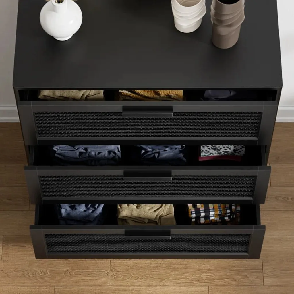 وحدة أدراج بثلاثة أدراج بتصميم عصري من خشب الراتان – لون أسود أنيق