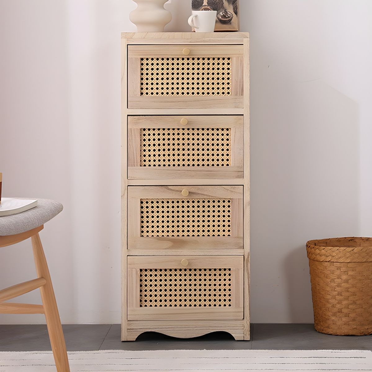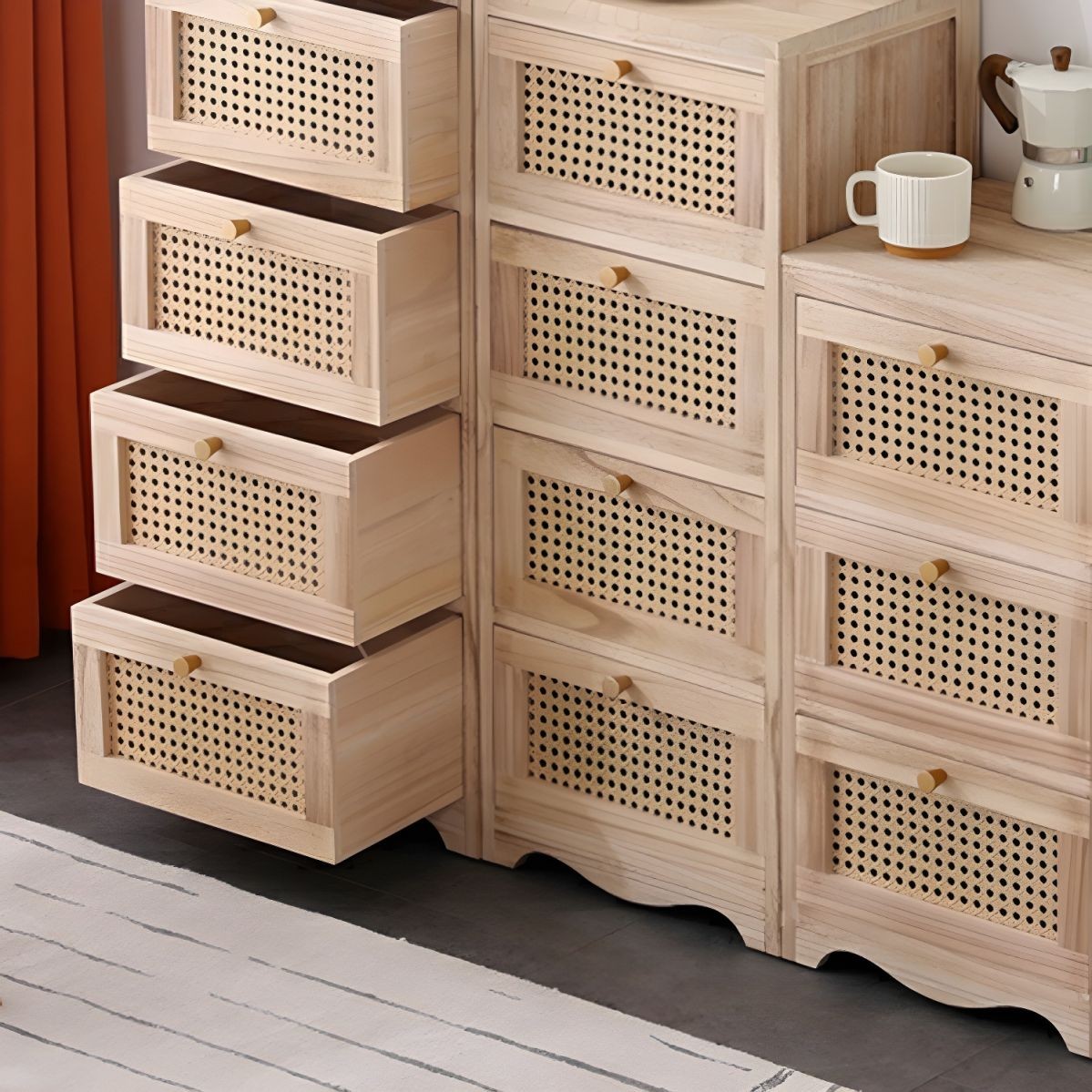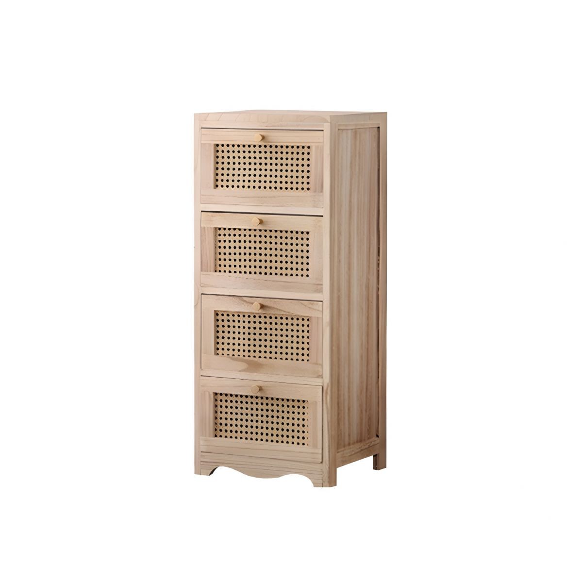وحدة الأدراج الأنيقة مصنوعة من الخشب عالي الجودة، بواجهة مصممة من الخيزران المنسوج لإضفاء لمسة عصرية. تأتي الوحدة بلون البيج الفاتح الذي يضفي إحساسًا بالدفء والهدوء. تتضمن أربع أدراج واسعة لتوفير مساحة تخزين مريحة وعملية.