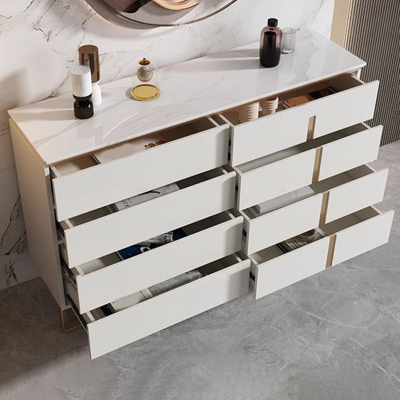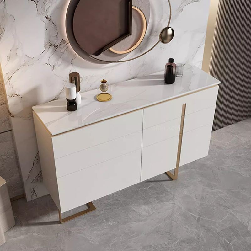 وحدة أدراج بتصميم عملي وفاخر، تتميز بجودة عالية ومساحة تخزين منظمة تلائم الاحتياجات اليومية. الوحدة مزودة بستة أدراج موزعة على صفين، مما يوفر خيارات واسعة للتخزين. تأتي بلون أبيض نقي، مع لمسات معدنية ذهبية تعزز الطابع الأنيق، بينما الأرجل المعدنية تمنحها الثبات والمتانة. سطح الوحدة مصنوع من الرخام الفاخر، مما يضفي جمالًا إضافيًا ويزيد من متانتها.