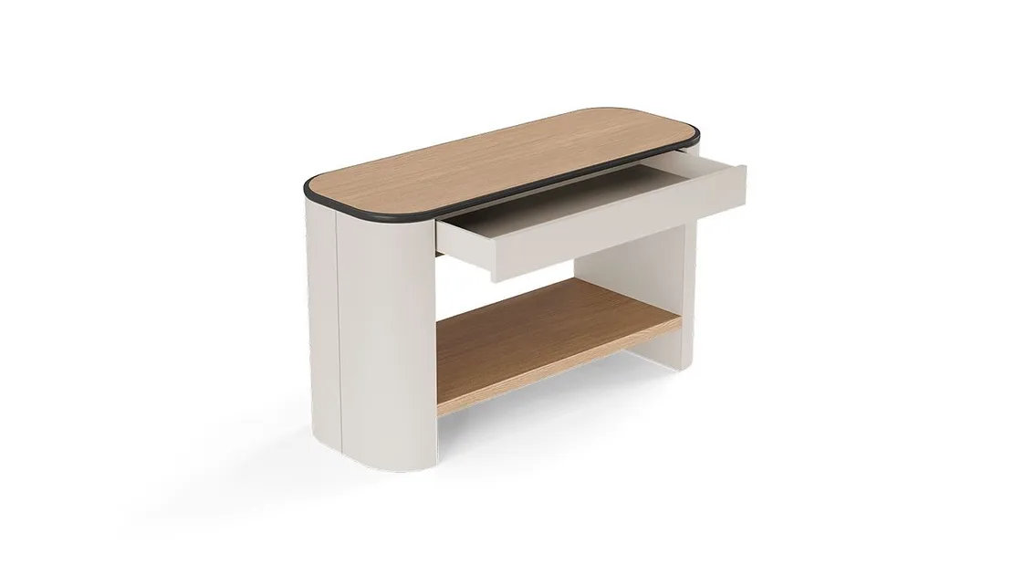 تصميم مميز يناسب جميع الديكورات تم تصميم الكونسول بحواف مستديرة ولمسات بسيطة لتتكامل مع مختلف أنماط الديكور الداخلي، سواء كانت حديثة أو تقليدية.