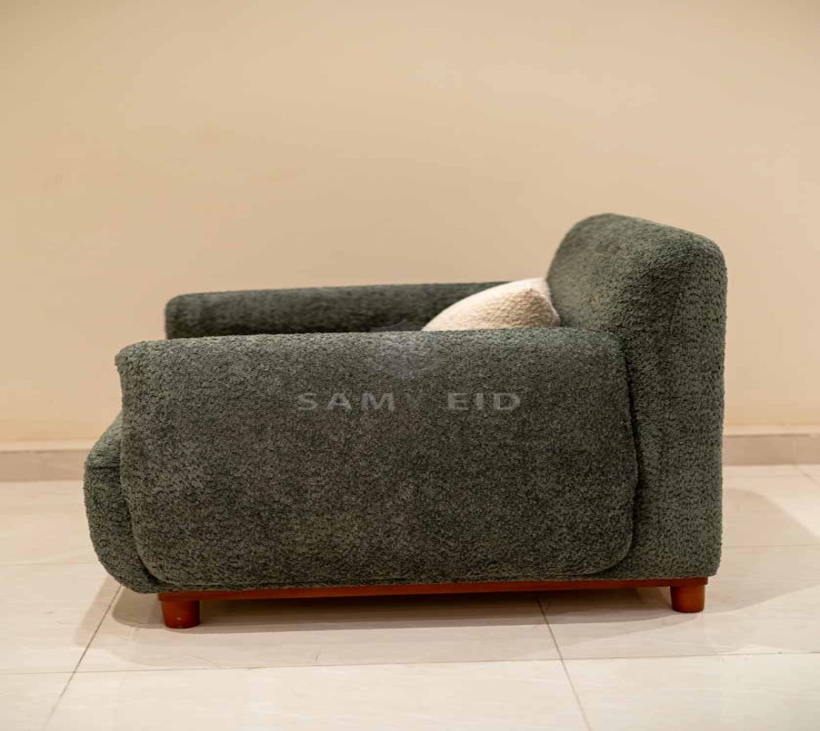 مقاعد مريحة بتنجيد فاخر باللون الزيتى الأنيق الذي يضفي لمسة من الدفء والهدوء على الغرفة.