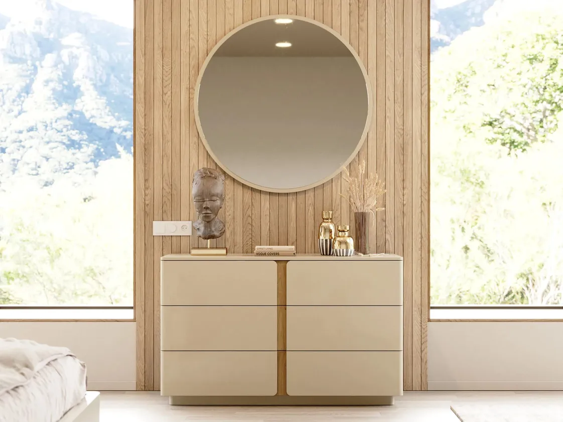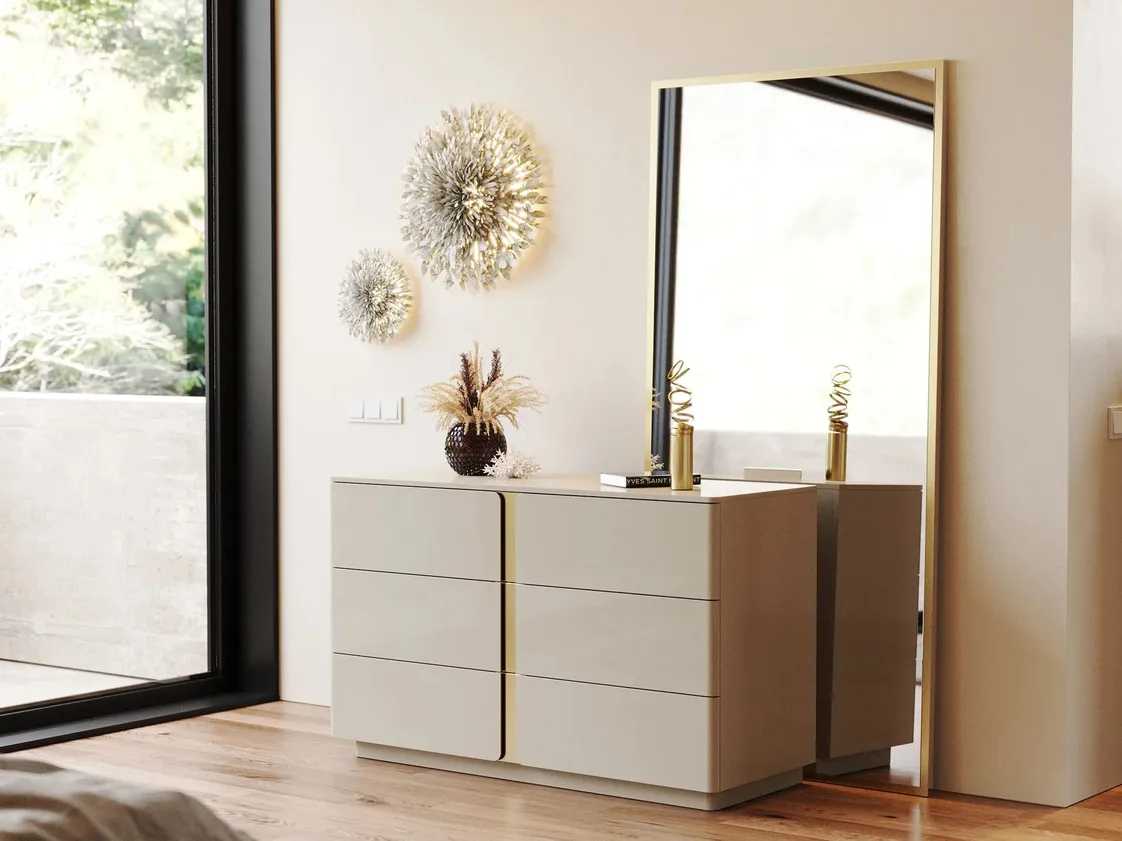 وحدة الأدراج تتميز بتصميم عصري وأنيق، مصنوعة من مواد عالية الجودة لضمان المتانة والأناقة. تتوفر باللون البيج الفاتح مع لمسات خشبية فاتحة في المنتصف أو باللون الأبيض مع تفاصيل خشبية باللون الذهبي، مما يضيف لمسة من الفخامة إلى أي مساحة. تحتوي الوحدة على ثلاثة أدراج واسعة توفر مساحة تخزين عملية ومنظمة، مما يساعد في ترتيب الأغراض الشخصية مثل المفاتيح، الأوراق، والإكسسوارات. بفضل تصميمها العصري والجذاب، تعد هذه الوحدة مثالية للاستخدام في غرف النوم، المكاتب، أو أي مساحة داخلية.