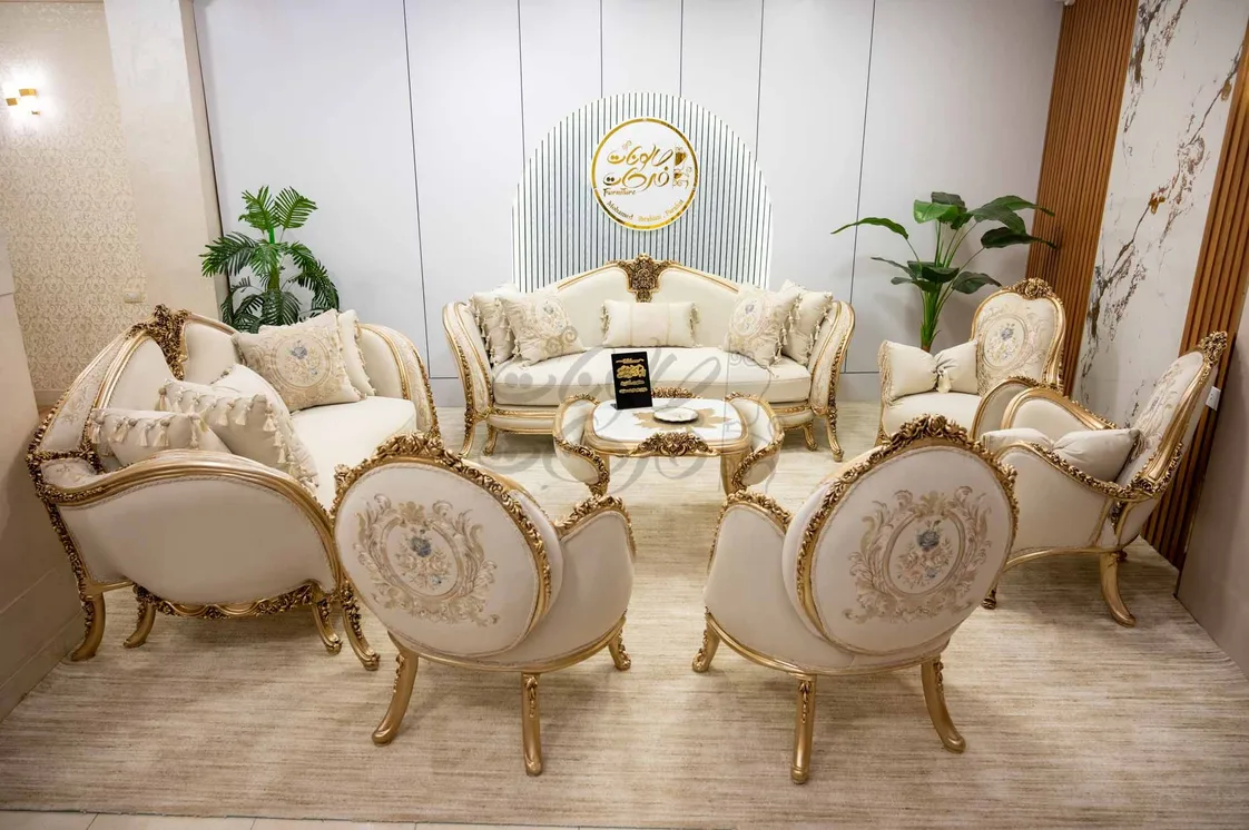 تصميم نيو كلاسيك فاخر بلمسات ذهبية ناعمة، وتطريزات ورود بتفاصيل دقيقة تعكس جمال الذوق الملكي.