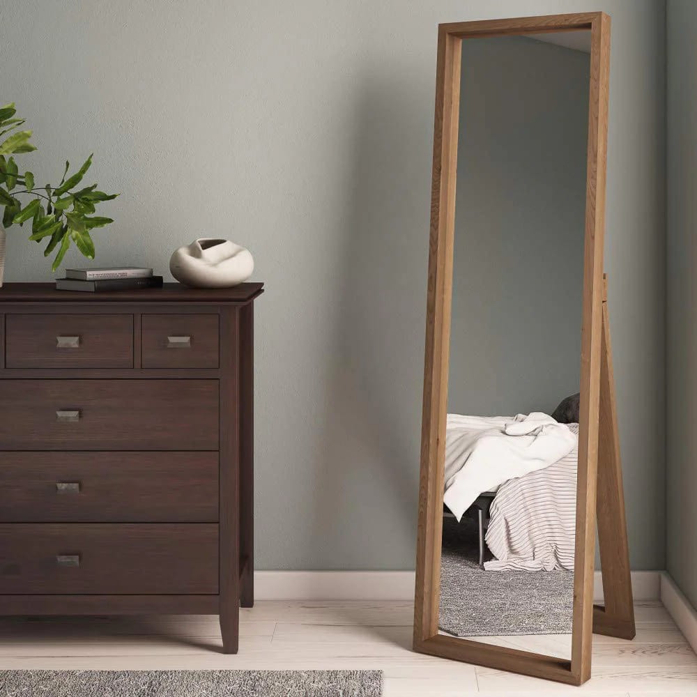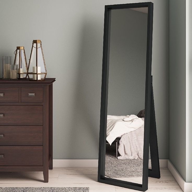 مرآة ستاند قائمة بذاتها بتصميم أنيق وبسيط تناسب كافة المساحات، خاصة غرف النوم أو مناطق الملابس. تتميز بأبعاد تقريبية تبلغ 170 سم في الارتفاع و60 سم في العرض، مما يمنح رؤية شاملة ومتكاملة للجسم بالكامل.