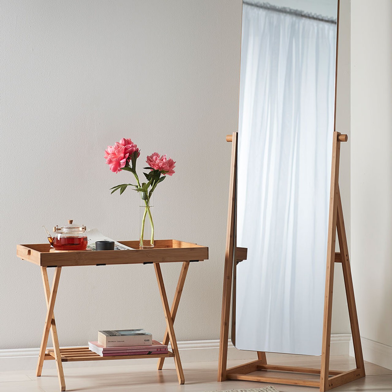 مرآة ستاند بتصميم بسيط وعصري تجمع بين العملية والجمال، مما يجعلها اختيارًا مثاليًا للاستخدام الشخصي في أي مساحة داخلية.