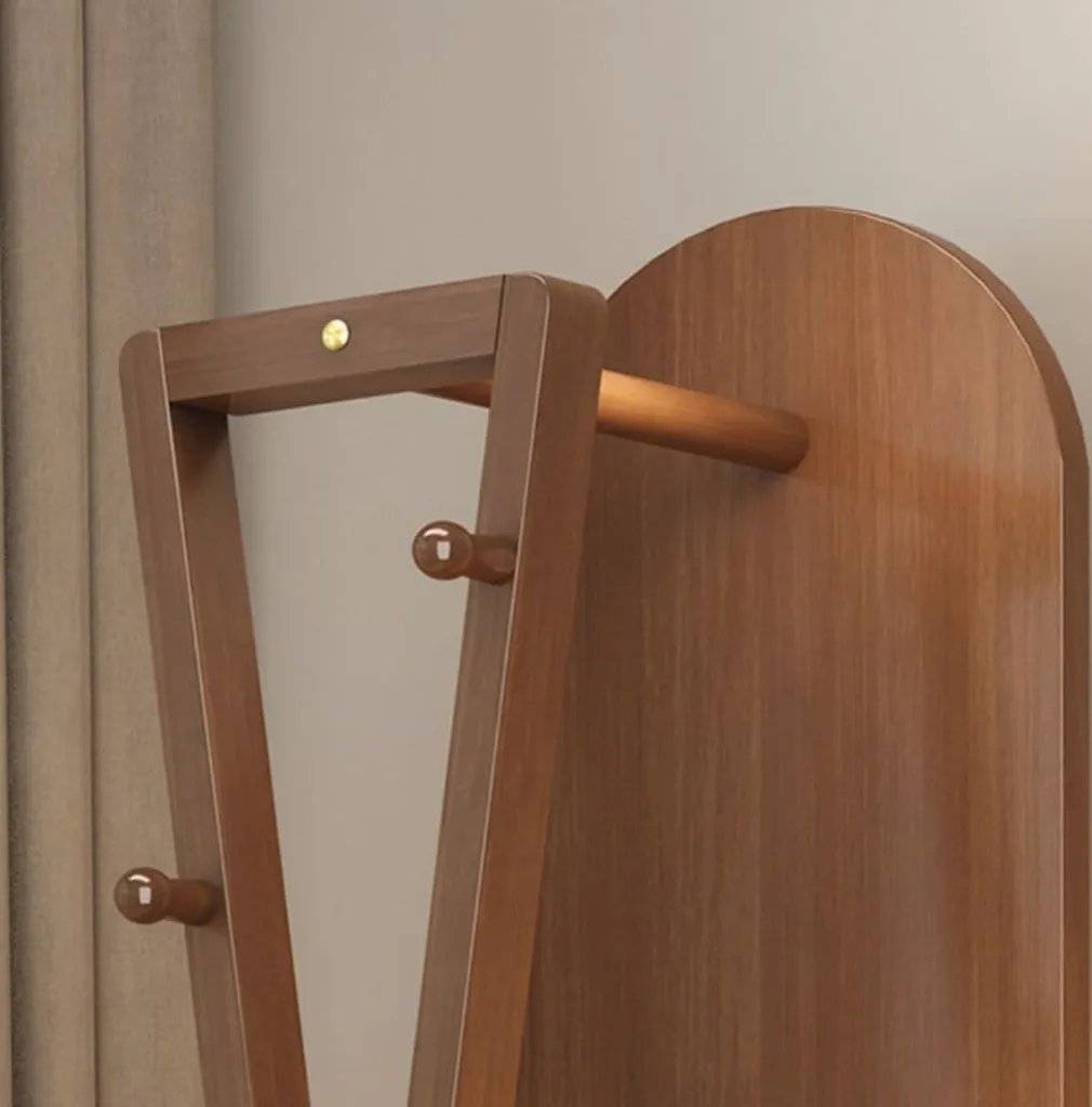 أضف لمسة من الأناقة والتنظيم إلى منزلك مع ستاند مرآة خشبي فاخر يجمع بين الجمال والعملية. يتميز هذا التصميم بمرآة بيضاوية طويلة واضحة وإطار خشبي طبيعي أنيق، مما يجعله قطعة ديكور مثالية لأي غرفة.