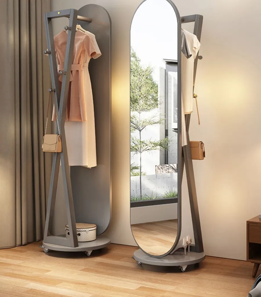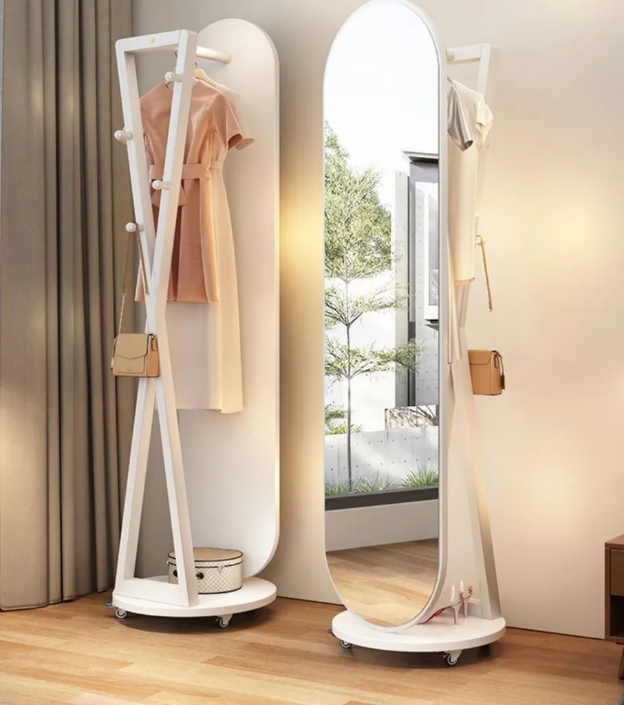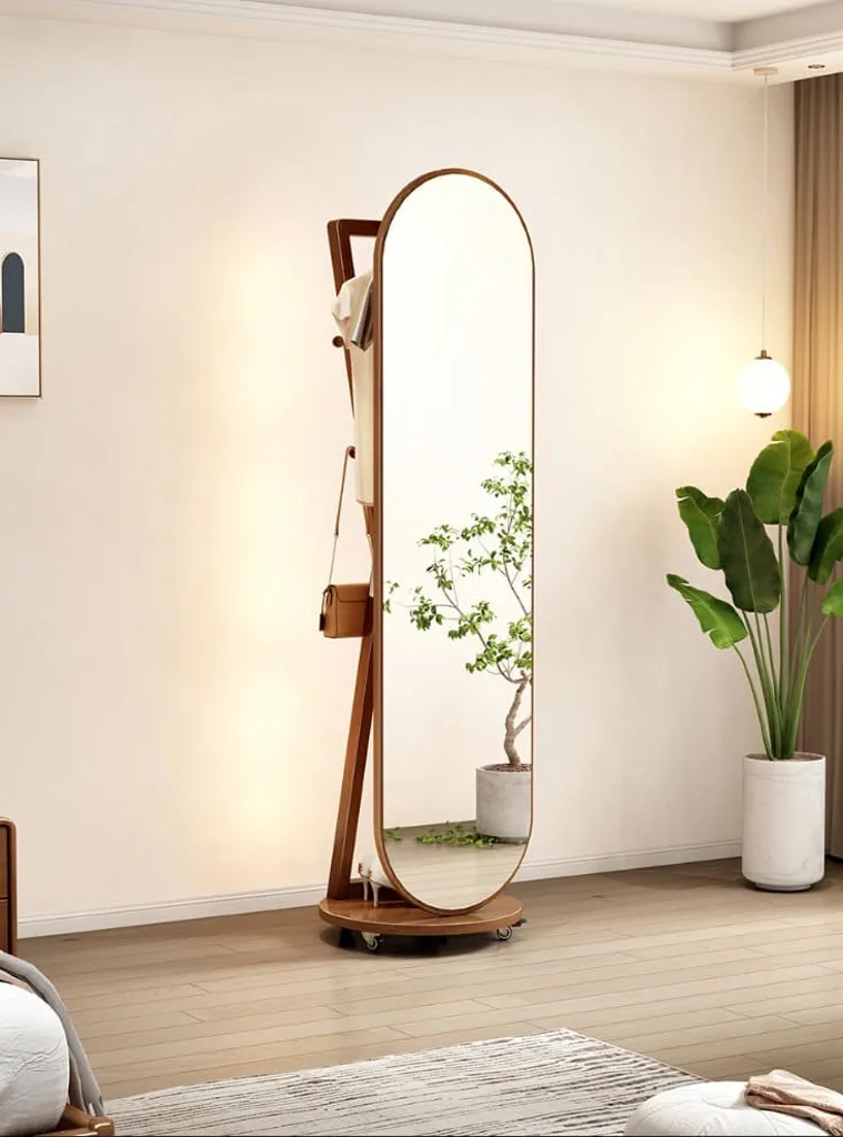 مرآة طويلة بتصميم بيضاوي: مرآة أمامية كبيرة تعكس صورة واضحة للجسم بالكامل، مثالية للاستخدام اليومي وتنسيق الإطلالات.