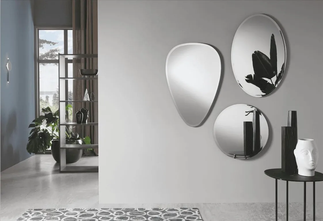 تأتي المرايا بأحجام مختلفة لخلق توازن بصري جذاب: