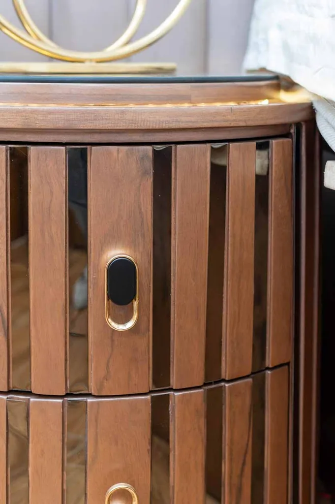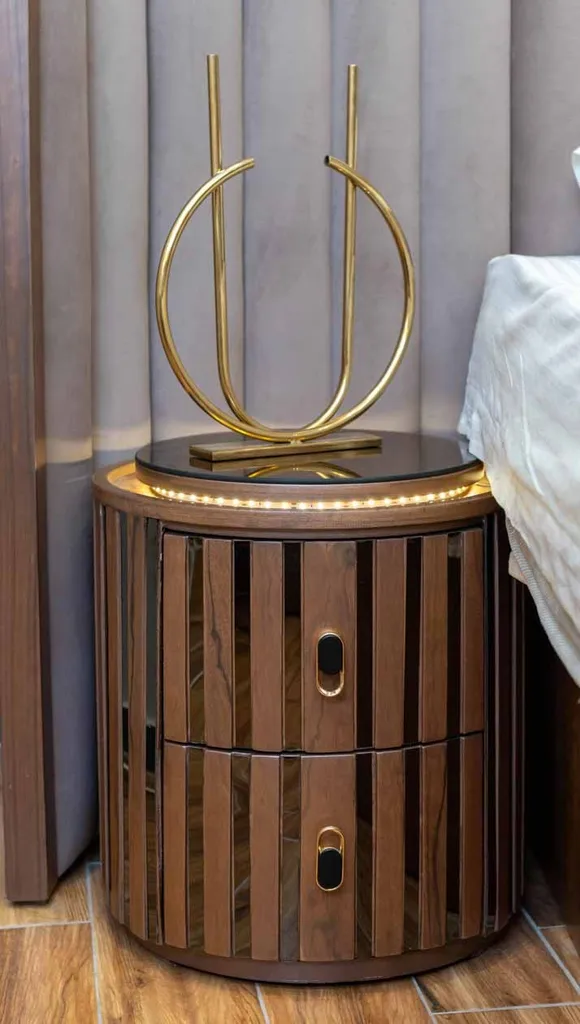 كومود خشبي عصري بتصميم دائري وزخرفة LED