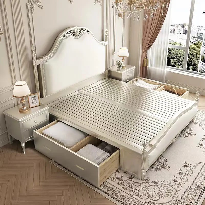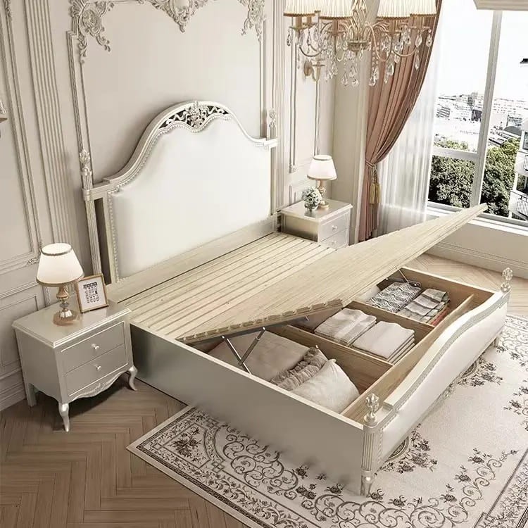استمتع بأناقة التصميم الكلاسيكي مع هذا السرير الخشبي الفاخر. يتميز بلوح رأس مرتفع مزين بتفاصيل منحوتة ونقوش دقيقة تضيف لمسة فخامة إلى الغرفة. اللوح الأمامي مصمم بحواف منقوشة ونقوش بارزة تبرز جمال التصميم. الأرجل القصيرة والمزخرفة تضيف ثباتًا ومظهرًا راقيًا يعكس توازنًا مثاليًا بين العملية والجمال.