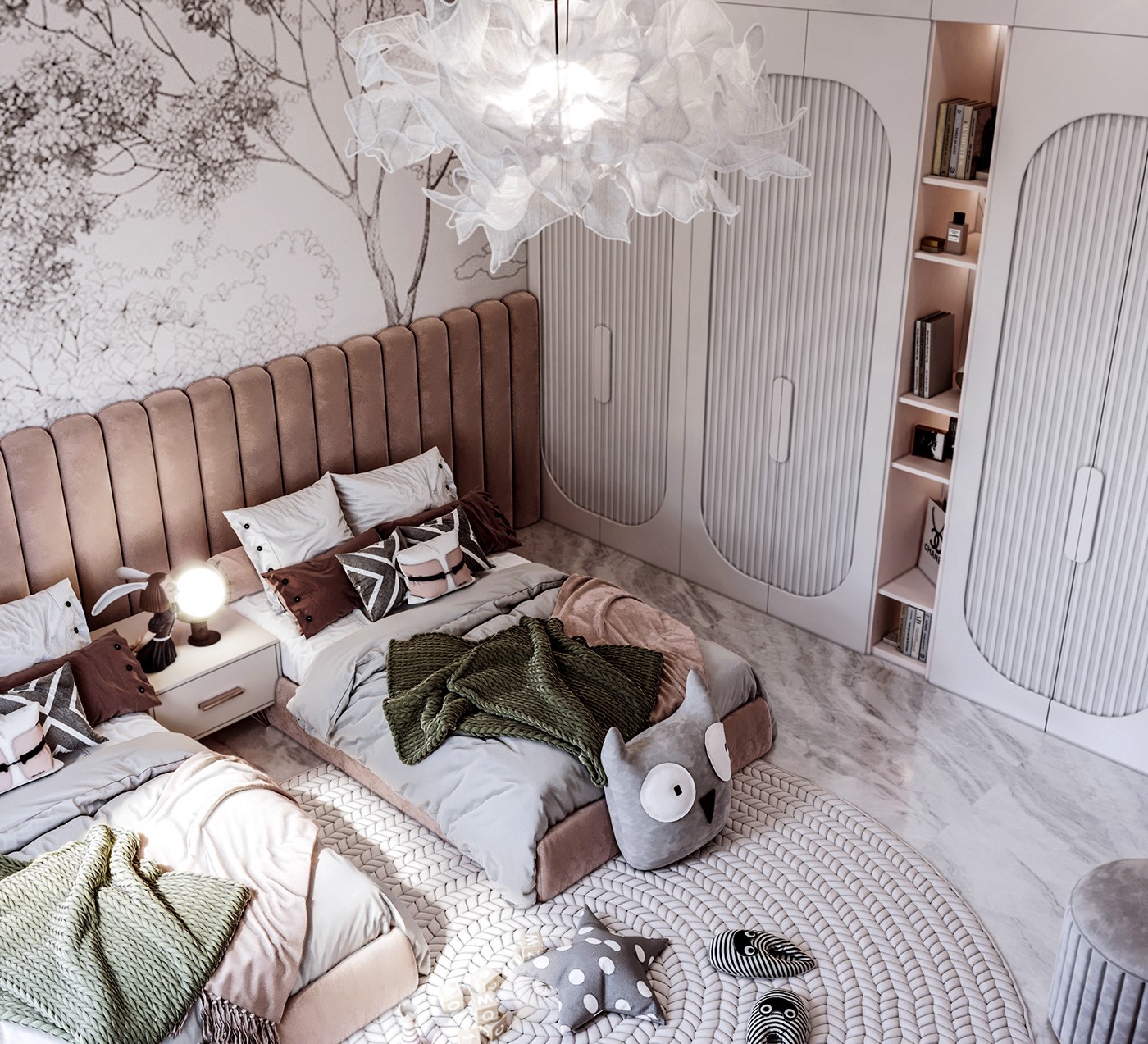 غرفة نوم مودرن للشباب والأطفال بتصميم هادئ يجمع بين البساطة والأناقة.