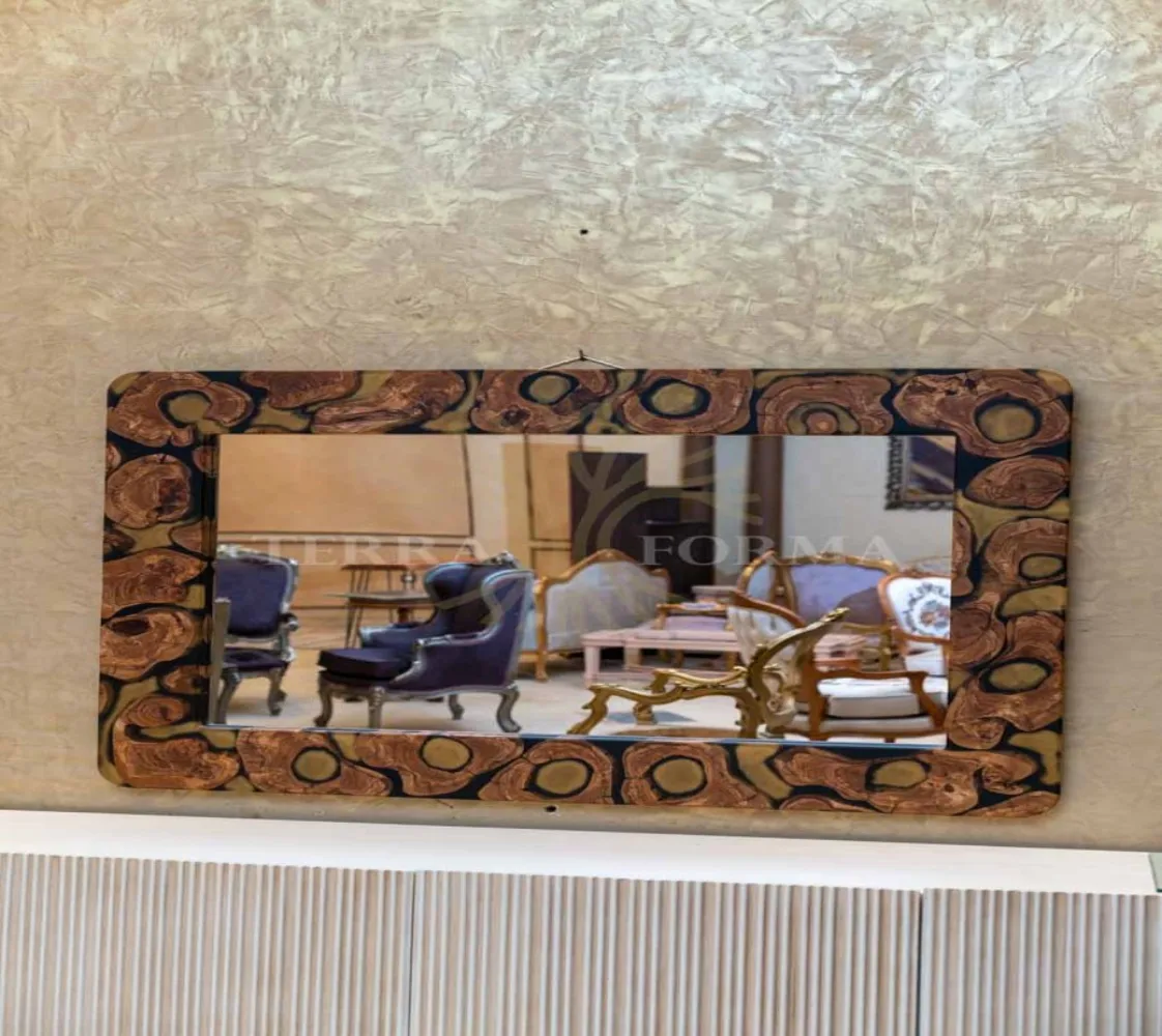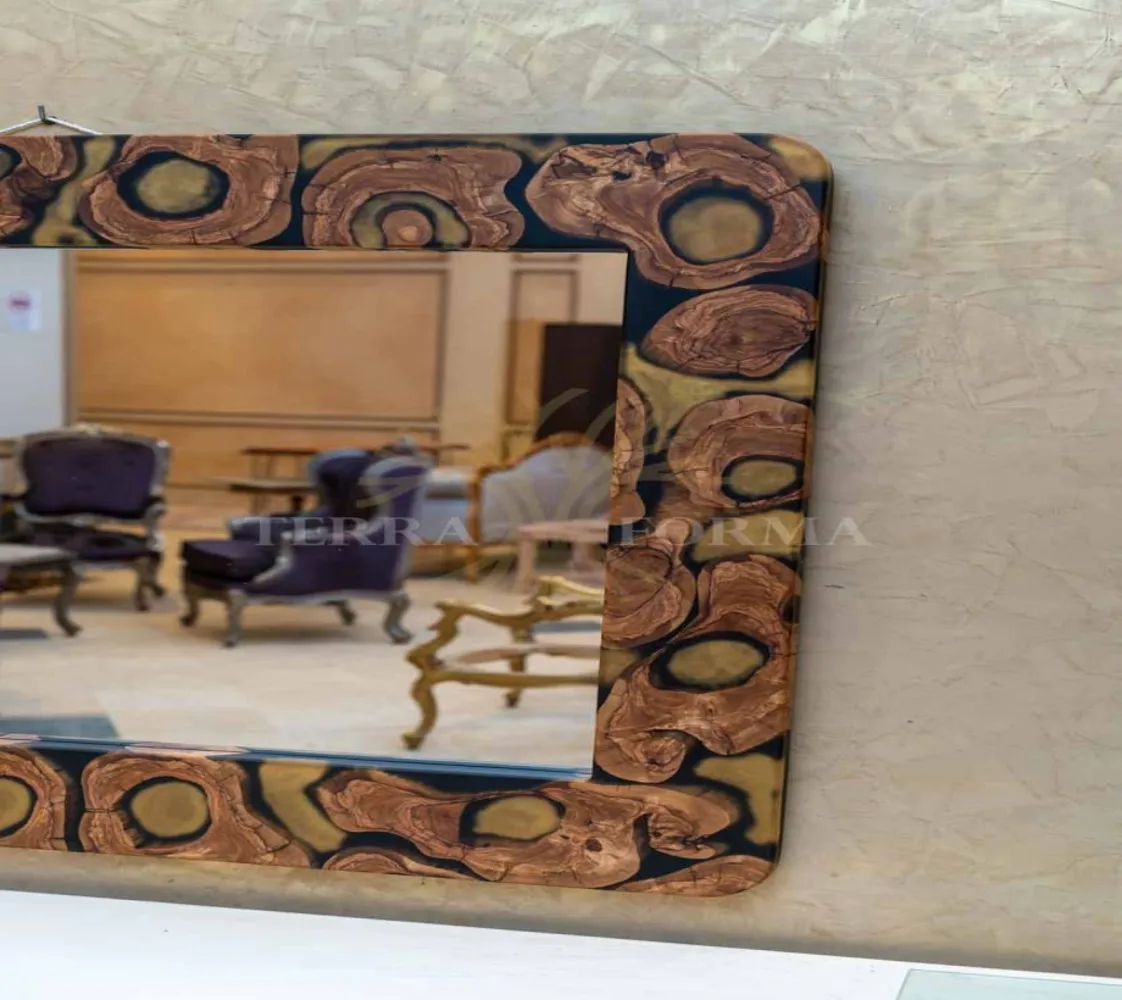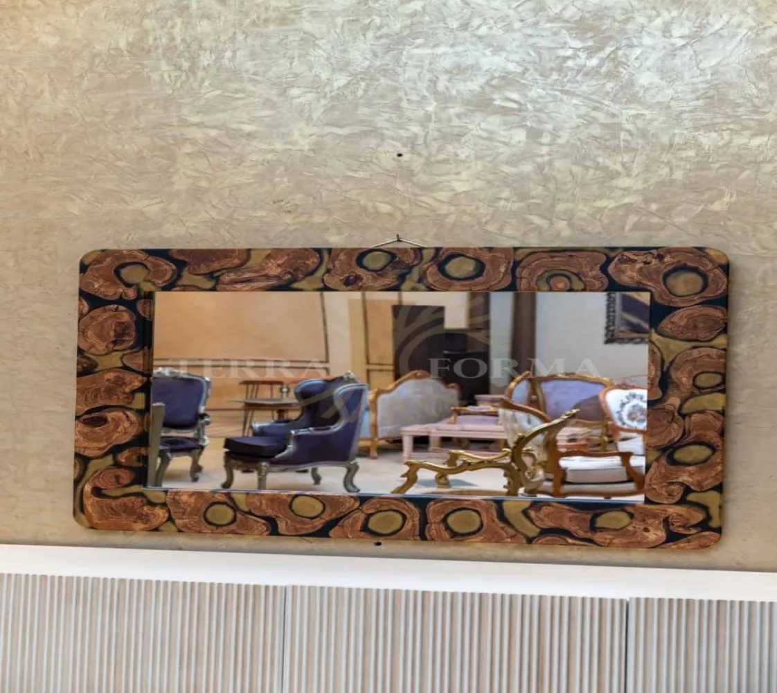 مرايا مستطيلة بإطار كامل من الإيبوكسي، بتصميم عصري بسيط وأنيق، تضيف لمسة فنية لأي مساحة.