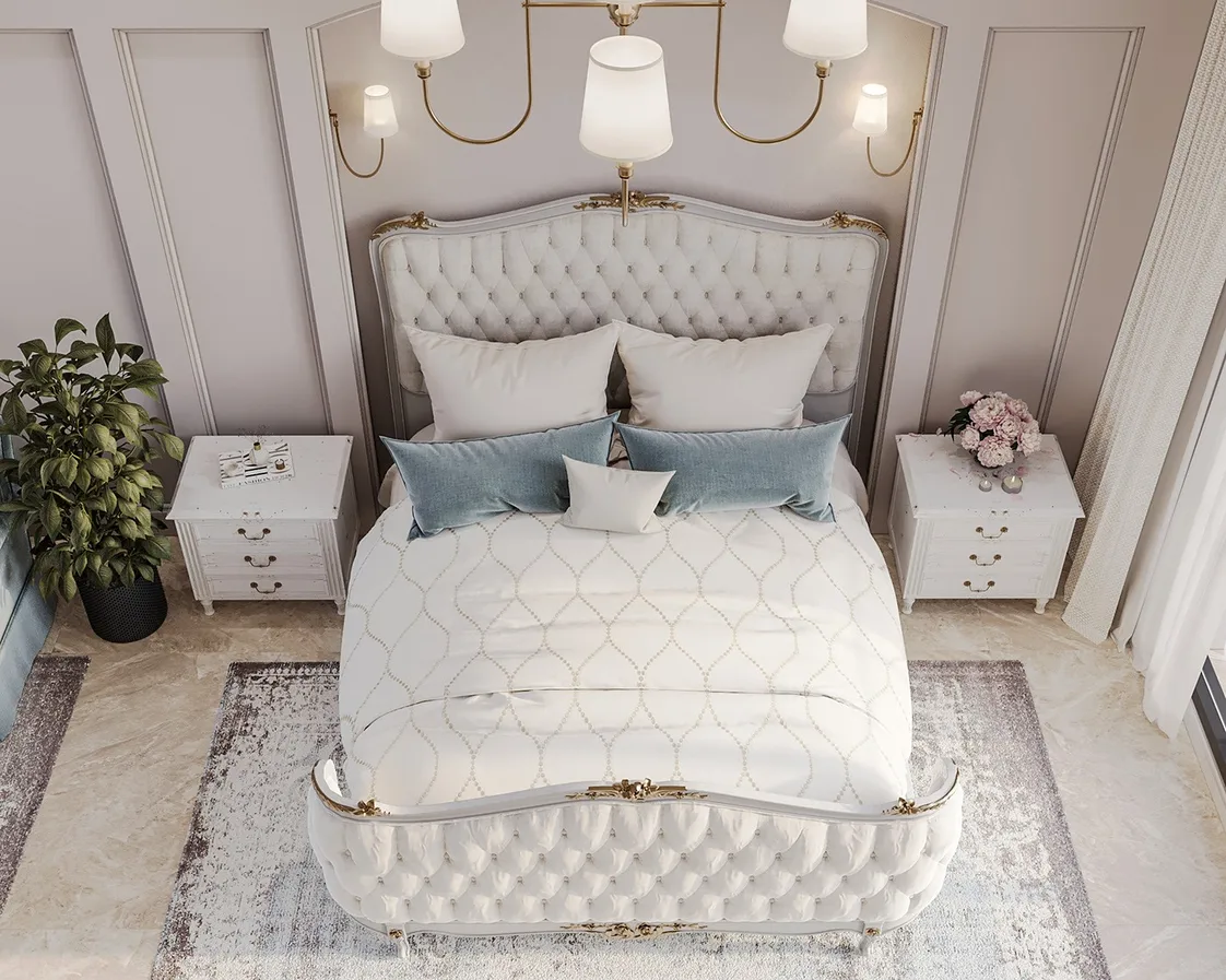 سرير و 2 كومود بتصميم كلاسيكي فاخر – تفاصيل زخرفية وأناقة لا مثيل لها