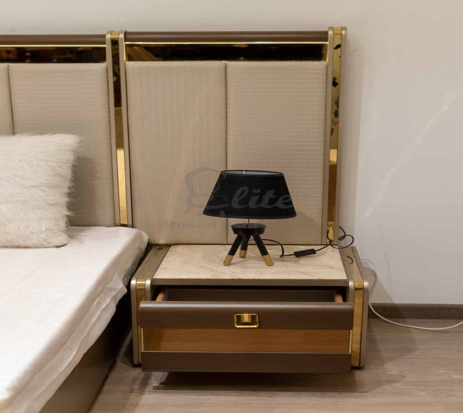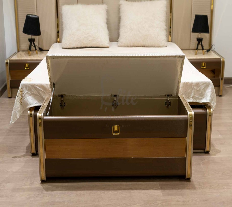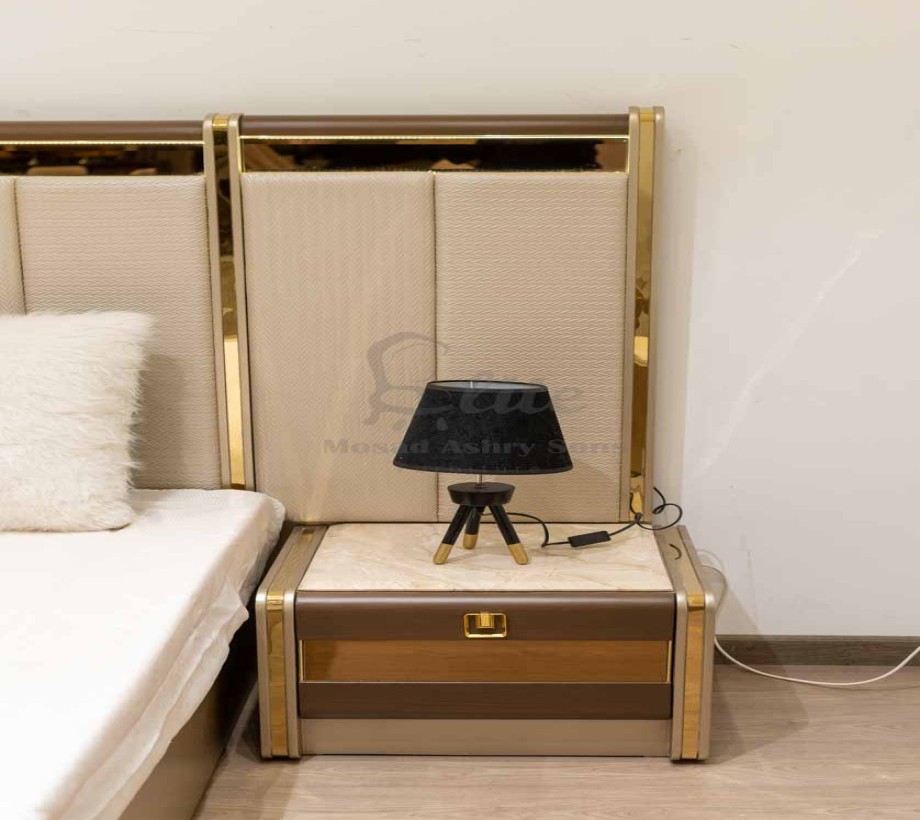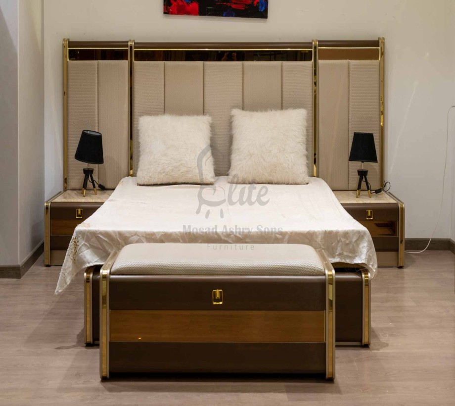 سرير مودرن بتفاصيل ذهبية أنيقة