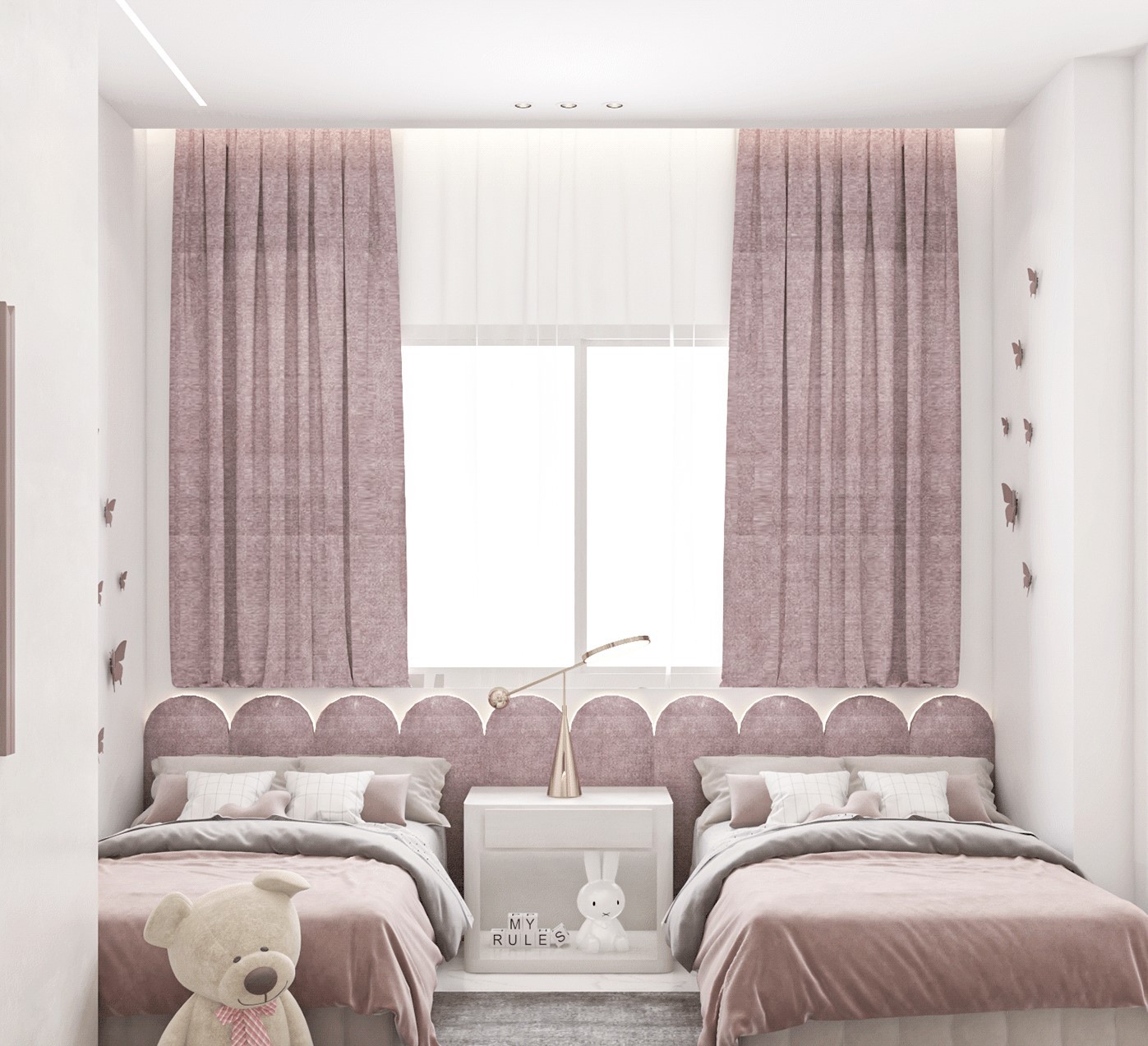 امنح غرفة أطفالك لمسة من الفخامة والدفء مع طقم السريرين المصمم خصيصًا ليناسب أجواء غرف الأطفال العصرية. يتميز كل سرير بغطاء منجد باللون الوردي الداكن ولوح رأس منحني يضفي مظهرًا أنيقًا وناعمًا يناسب مختلف أنماط الديكور.