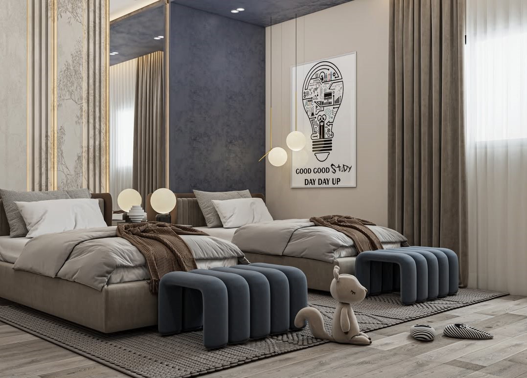 غرفة نوم شباب وأطفال مودرن بتصميم أنيق وعصري