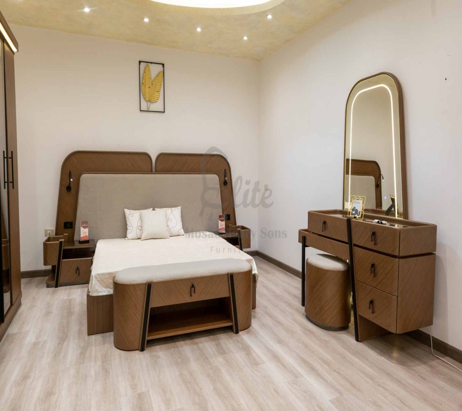 غرفة نوم مودرن بألوان الخشب والبني — تصميم راقٍ وجودة عالية