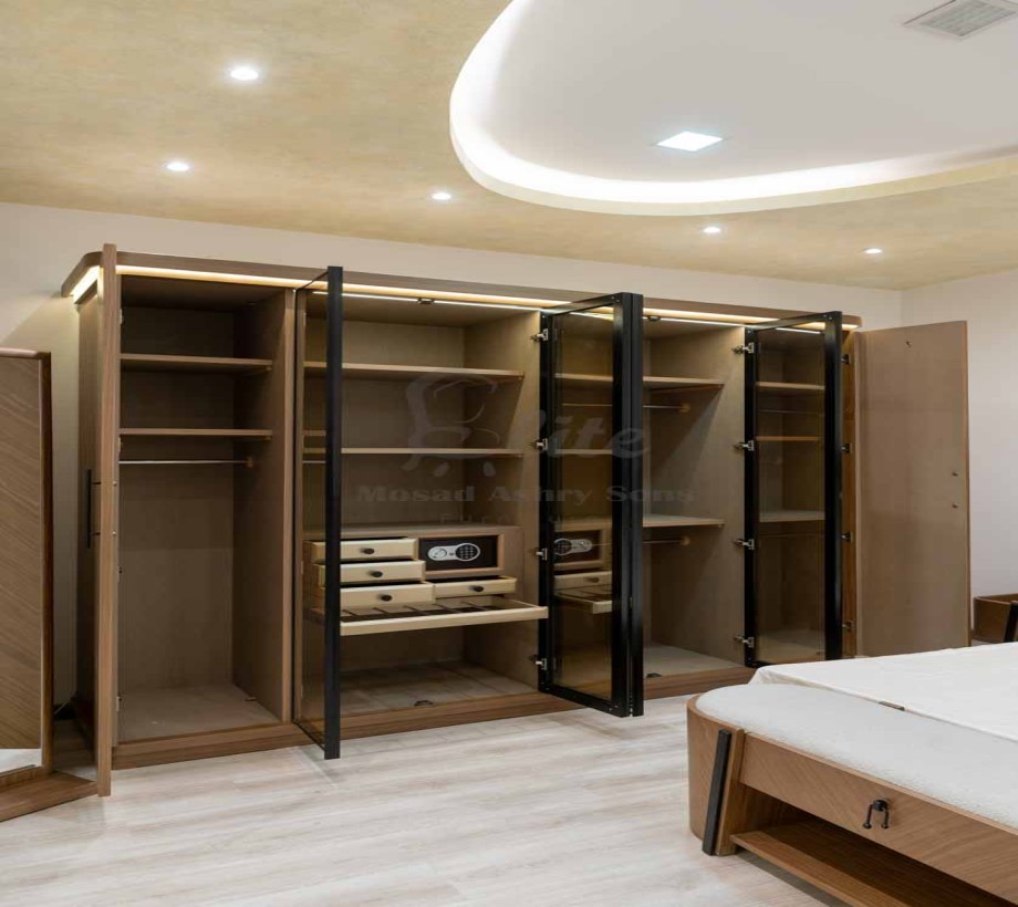 دولاب واسع بتشطيبات خشبية وبني داكن