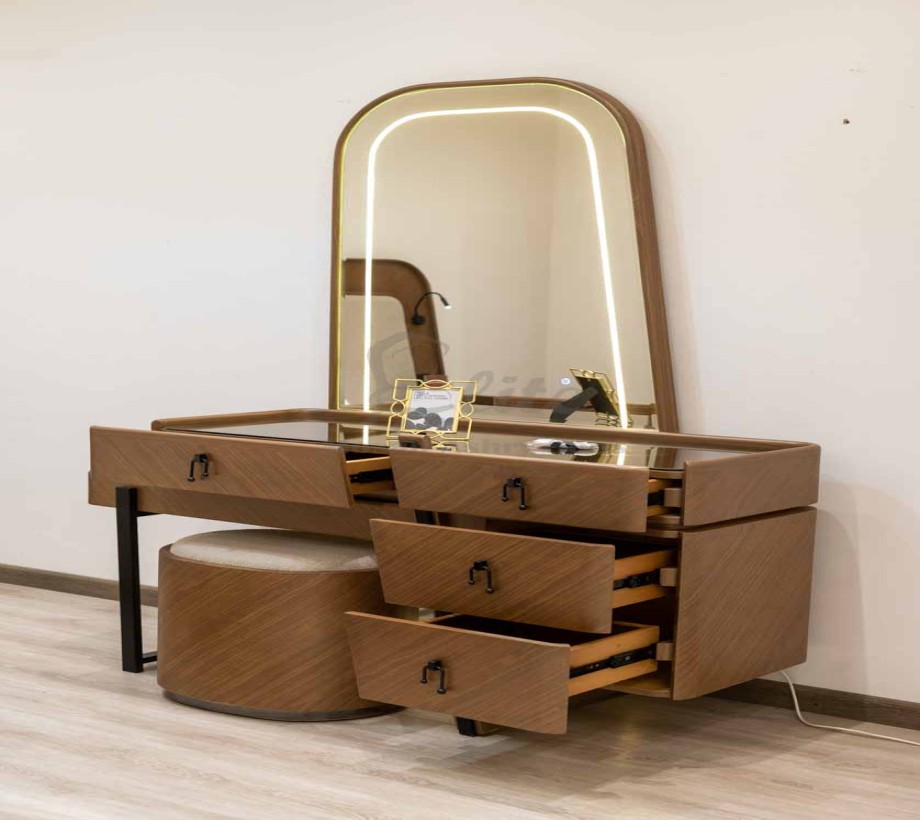 تسريحة مع مرآة وإضاءة مدمجة لروتين تجميل مريح