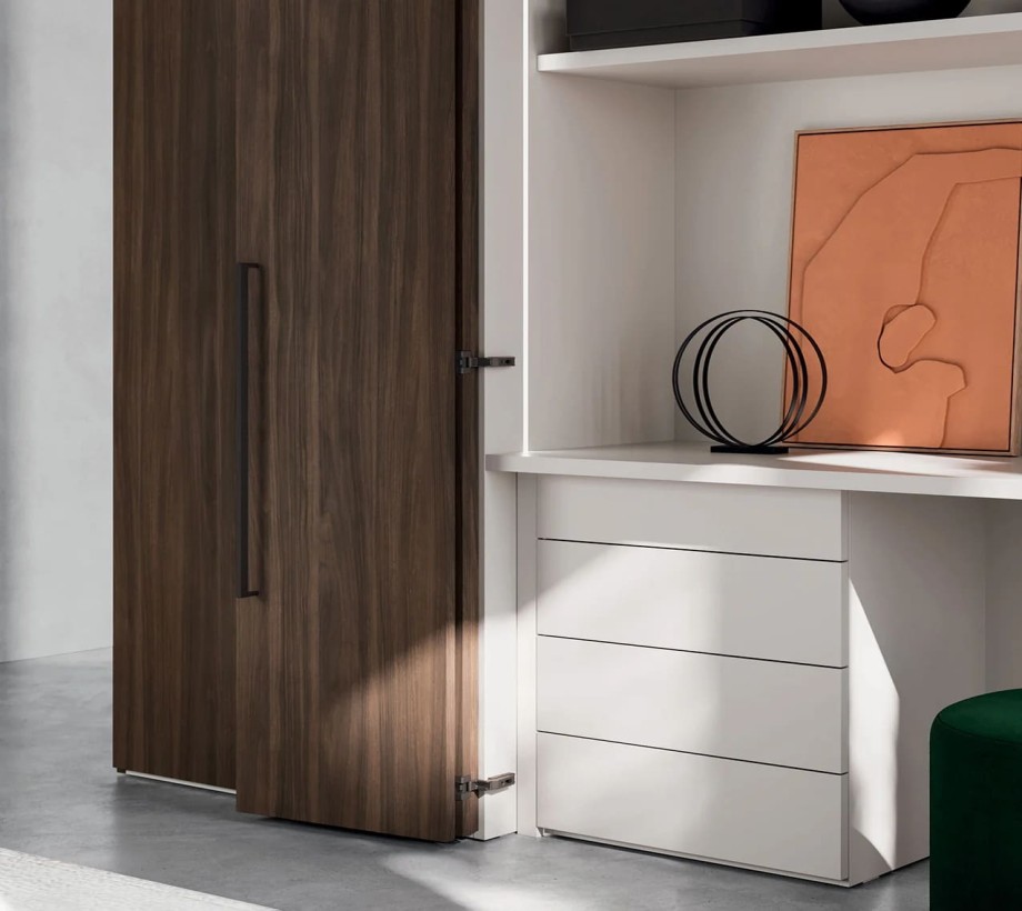 أفضل اختيار لمن يبحث عن دولاب تخزين واسع يجمع بين دولاب ملابس، مكتبة، ومكتب دراسة في تصميم واحد، ليمنحك المساحة التي تحتاجها دون التنازل عن الأناقة.