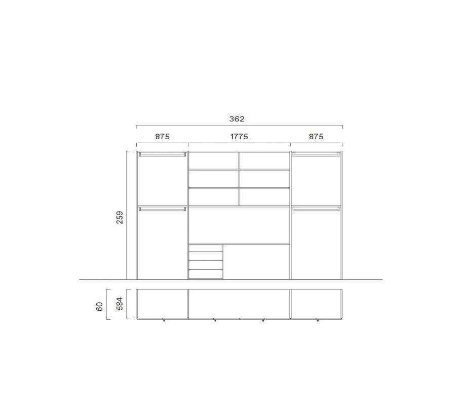 الأبعاد: عمق 60 سم × عرض 360 سم × ارتفاع 260 سم