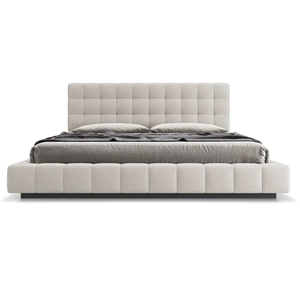 سرير عصري مبطن بلوح رأسي مرتفع - تصميم أنيق بلون أوف وايت ورمادي