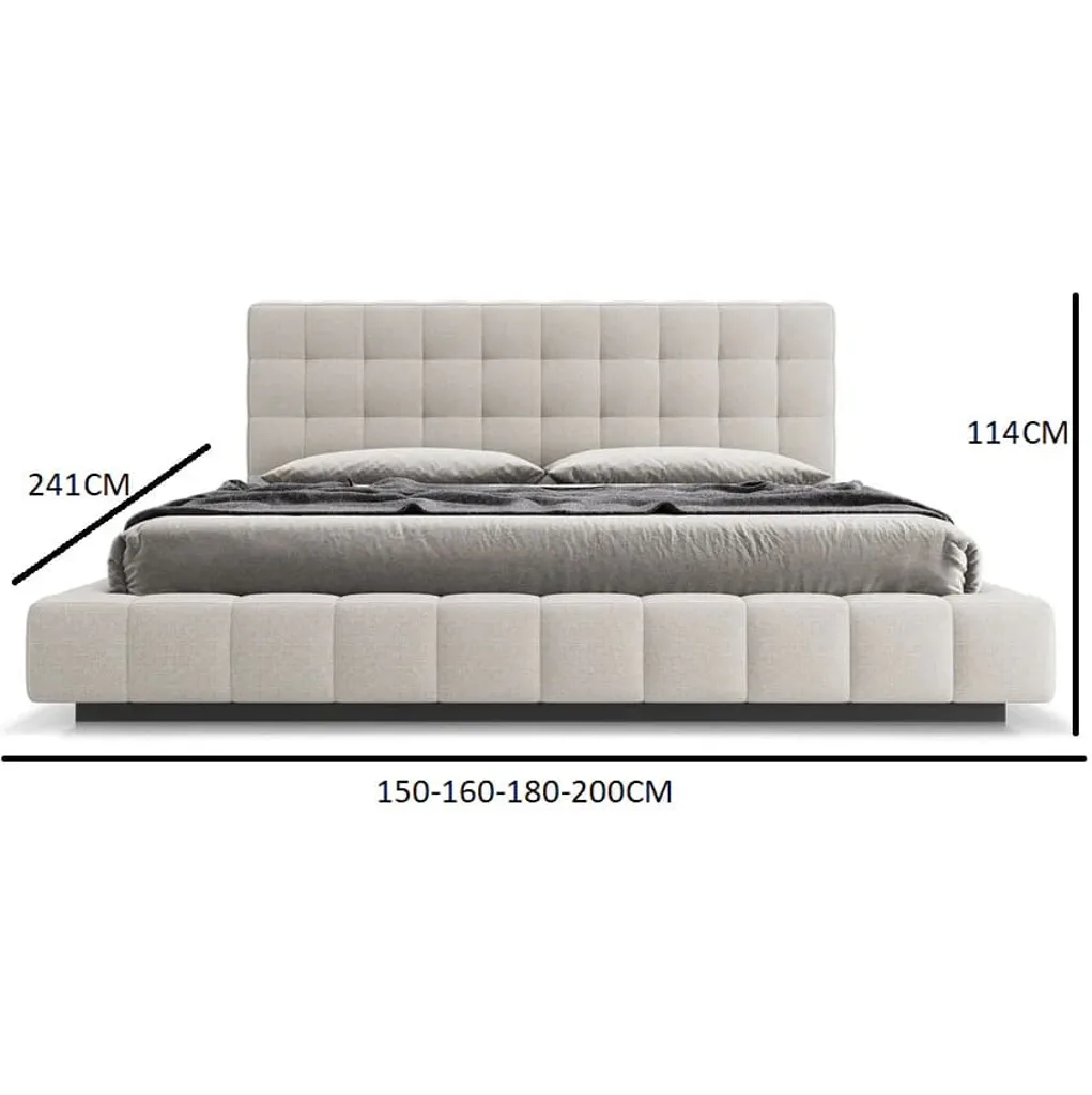 أضف لمسة فخامة إلى غرفة نومك مع هذا السرير العصري الأنيق، المصمم بلوح رأسي مرتفع ومبطن، مزين بتطعيمات مربعة أنيقة تضفي طابعًا راقيًا ومميزًا. يتميز الإطار السفلي بنفس نمط التنجيد، مما يمنح السرير مظهرًا متناسقًا وجذابًا ينسجم مع ديكور غرف النوم الحديثة.