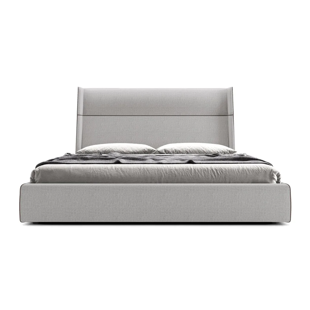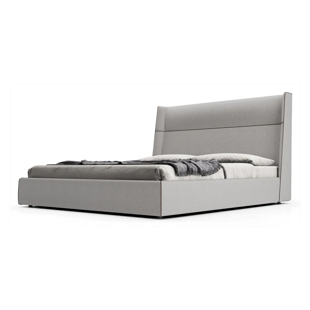 ارتقِ بأناقة غرفة نومك مع هذا السرير الخشبي عالي الجودة، المبطن بالكامل بقماش رمادي فخم، والمصمم بأسلوب حديث وبسيط. يتميز بقاعدة منخفضة وعريضة توفر ثباتًا واستقرارًا مثاليين، مع لوح رأس مرتفع ومستقيم مزين بخط أفقي يضفي لمسة جمالية دقيقة.