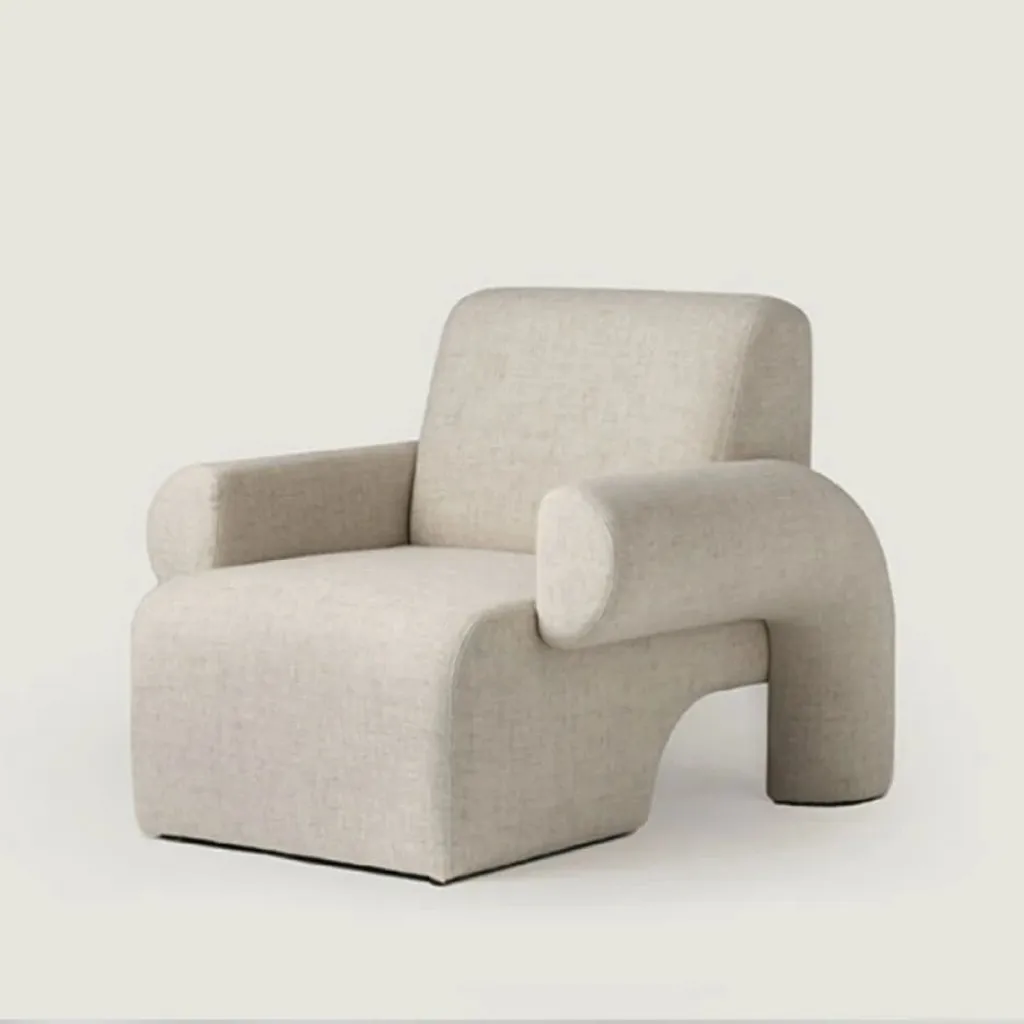 تتميز هذه الكنبة العصرية بتصميم أنيق وجميل، حيث تتميز بأذرع عريضة ومنحنية تضيف لمسة من الراحة والحداثة. الشكل المستطيل مع الزوايا المنحنية يضفي عليها مظهرًا عصريًا وأنيقًا. تم تصميم قاعدة الجلوس لتكون مبطنة بشكل جيد، مما يوفر أقصى درجات الراحة أثناء الجلوس، بينما الأرجل غير الظاهرة تضفي عليها طابعًا انسيابيًا.