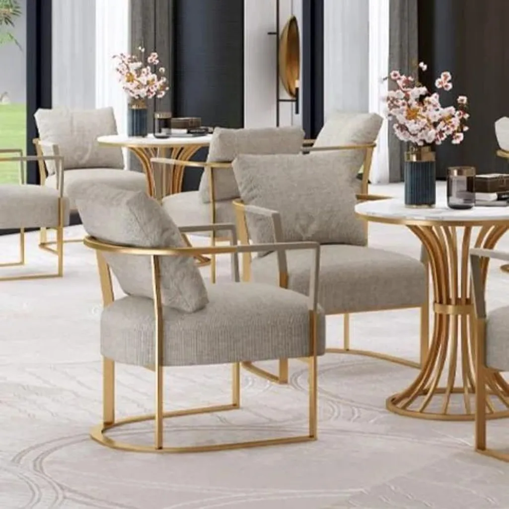 كرسي عصري بإطار معدني ذهبي وتنجيد بيج فاتح – لمسة راقية لمختلف المساحات