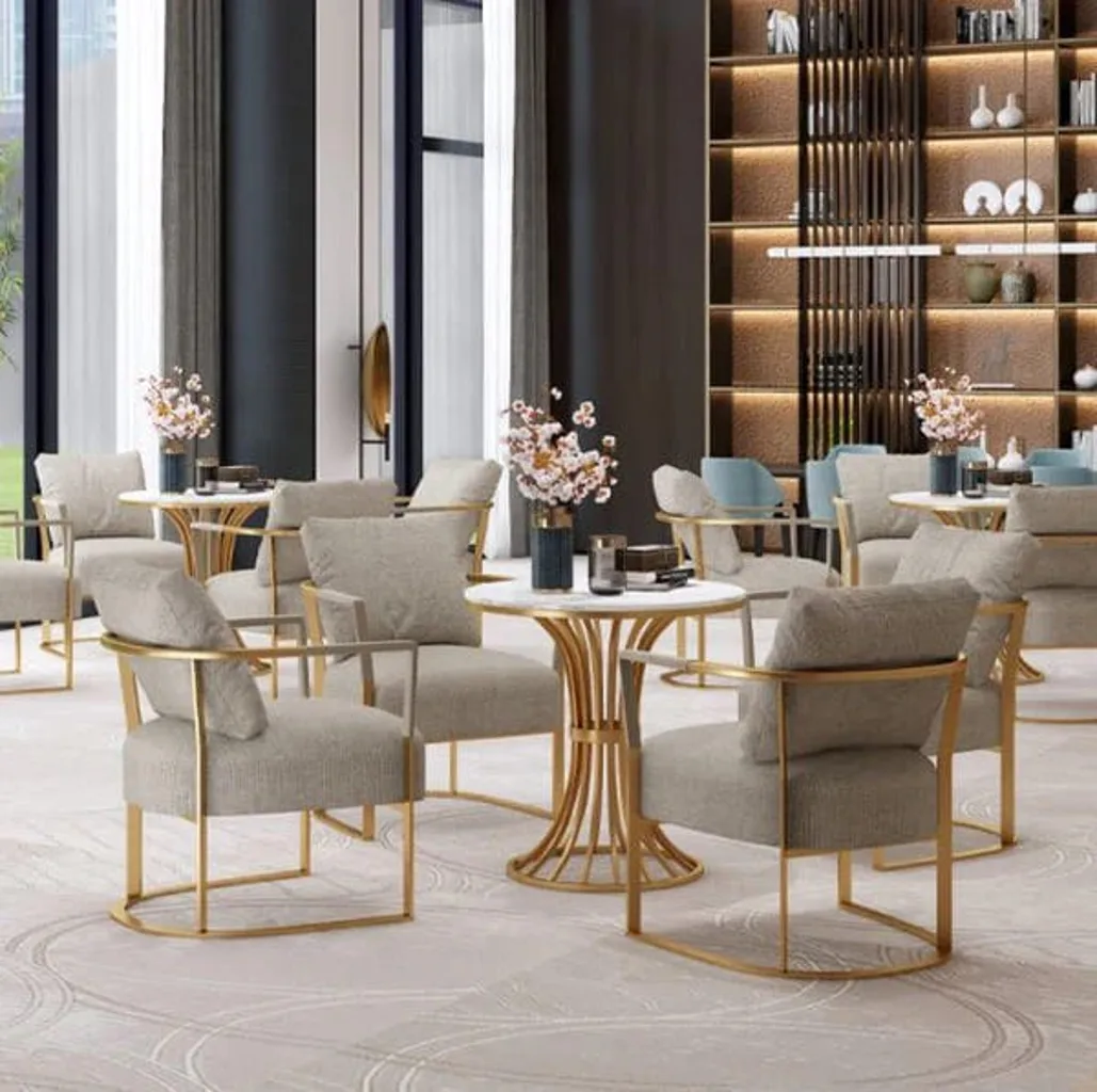 ✔️ إطار معدني ذهبي متين بتصميم أنيق يعزز مظهر الكرسي العصري.