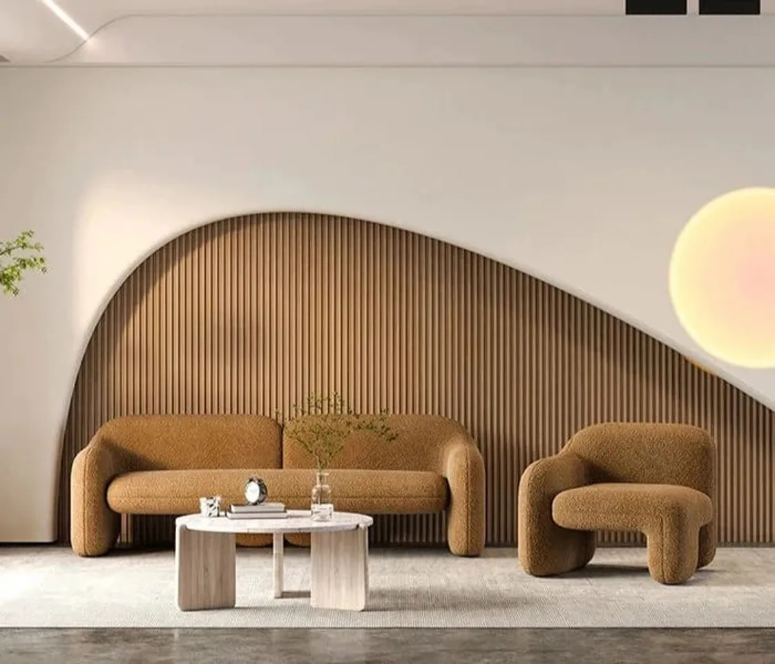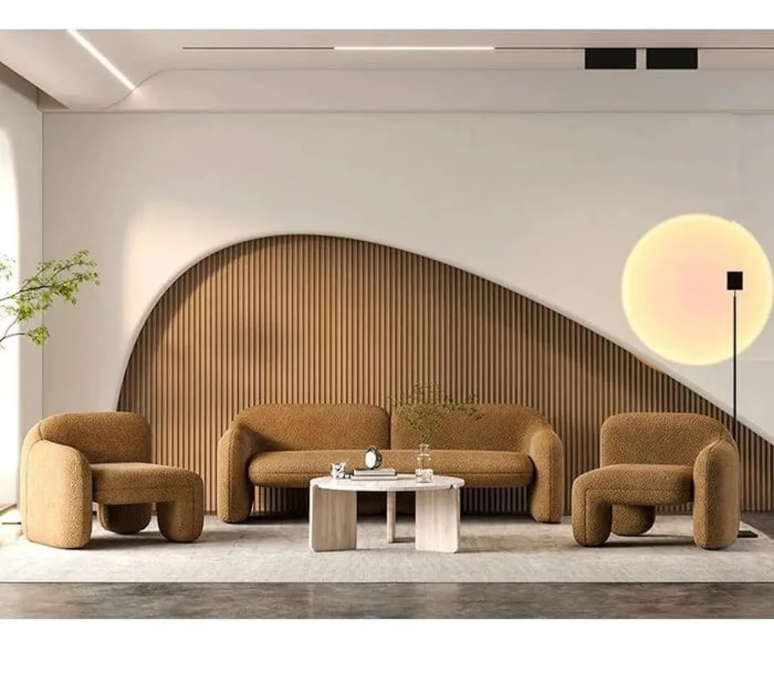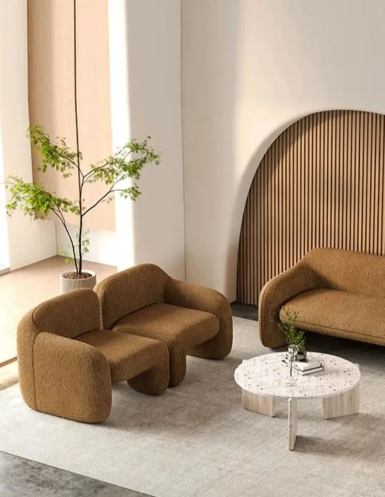 كما أن الأرجل مدمجة بسلاسة داخل التصميم، مما يضيف لمسة انسيابية متماسكة تناسب مختلف أنماط الديكور.