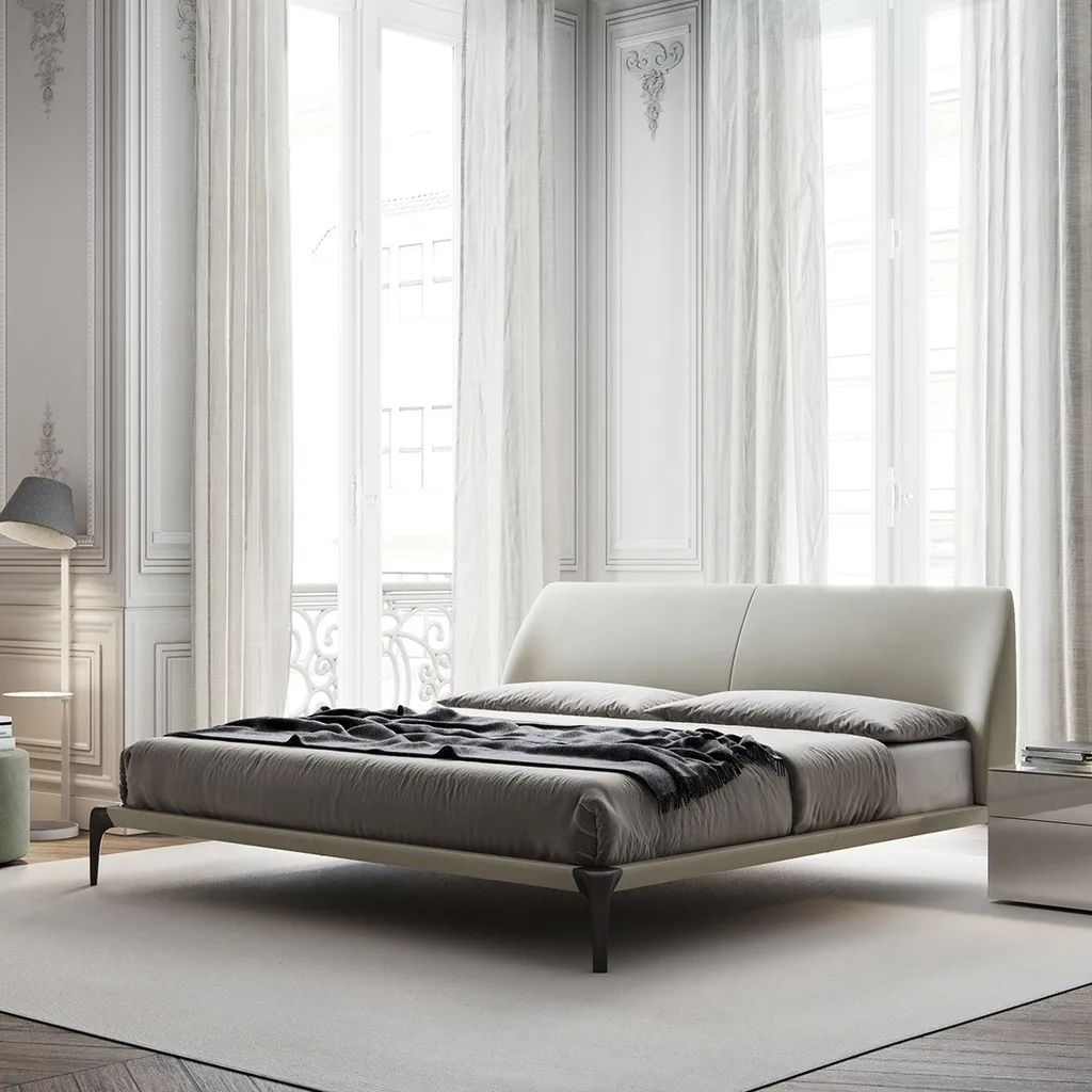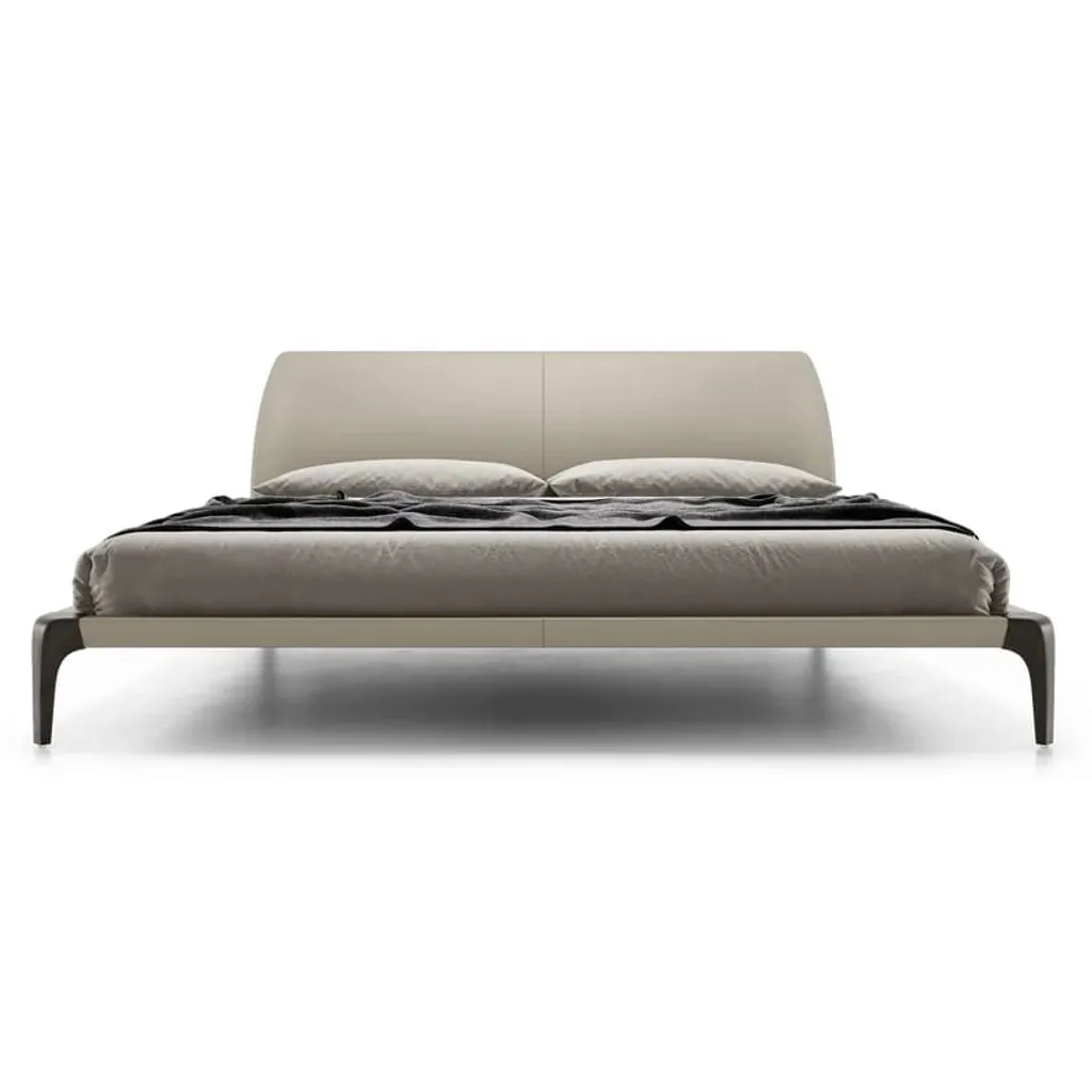 سرير بتصميم عصري بسيط يجمع بين الأناقة والعملية، يتميز بإطار منخفض يمنح الغرفة مظهرًا أنيقًا وعصريًا. يضم لوحًا رأسيًا مبطنًا بلون بيج، يضفي لمسة راقية ودافئة على التصميم. القاعدة مدعومة بأرجل رفيعة باللون البني الداكن، مما يعزز التباين ويوفر استقرارًا ومتانة عالية. يوفر السرير مساحة مريحة للنوم، ويتناسب بسهولة مع مختلف أنماط الديكور بفضل تصميمه المحايد والجذاب.