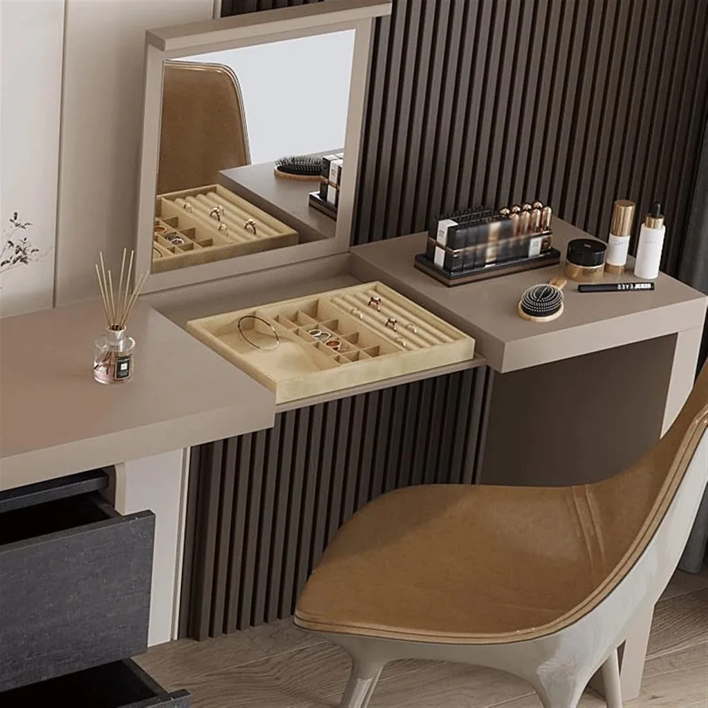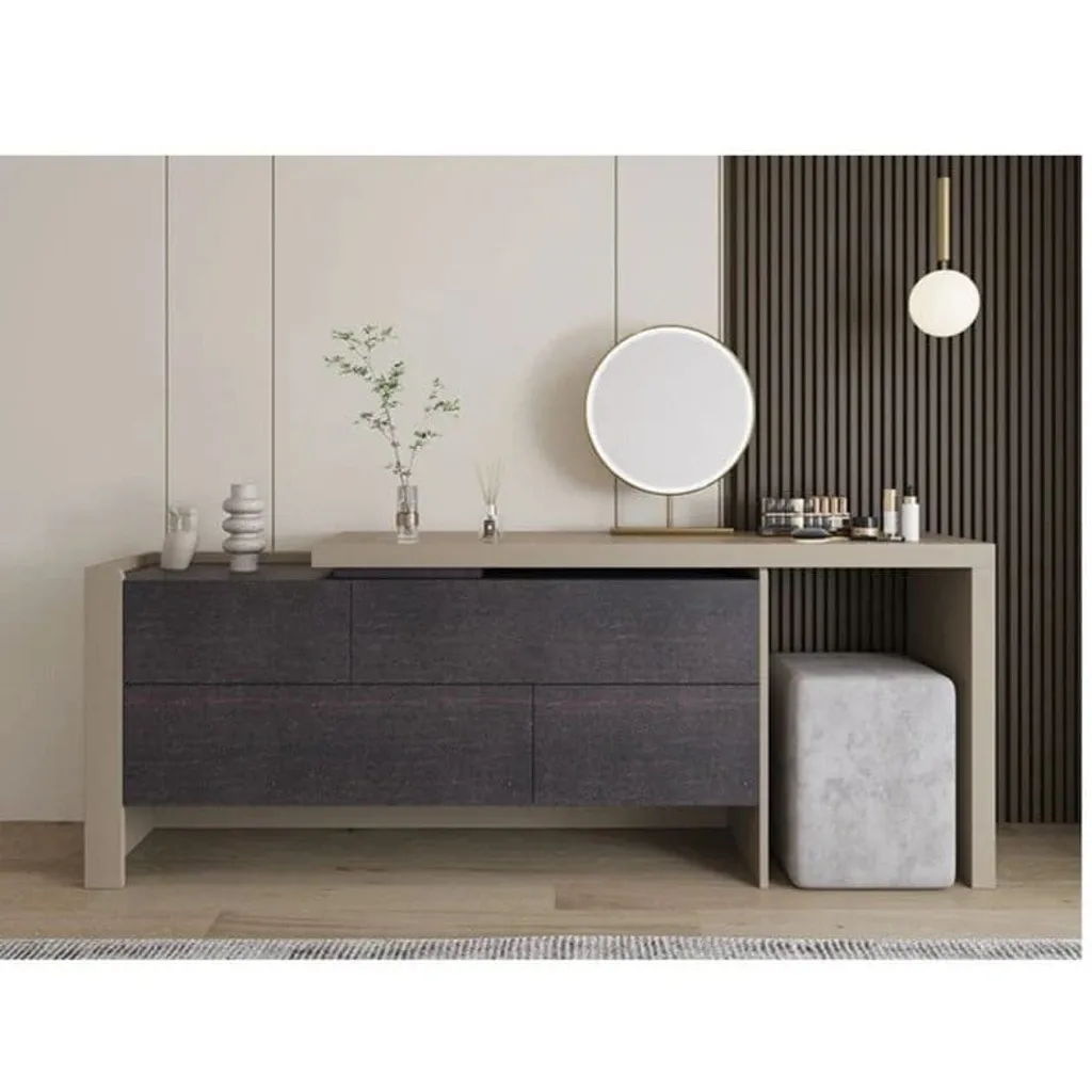 تسريحة مودرن مع مرآة مخفية وأدراج تخزين واسعة – تصميم عصري لغرف النوم