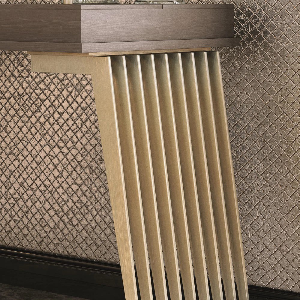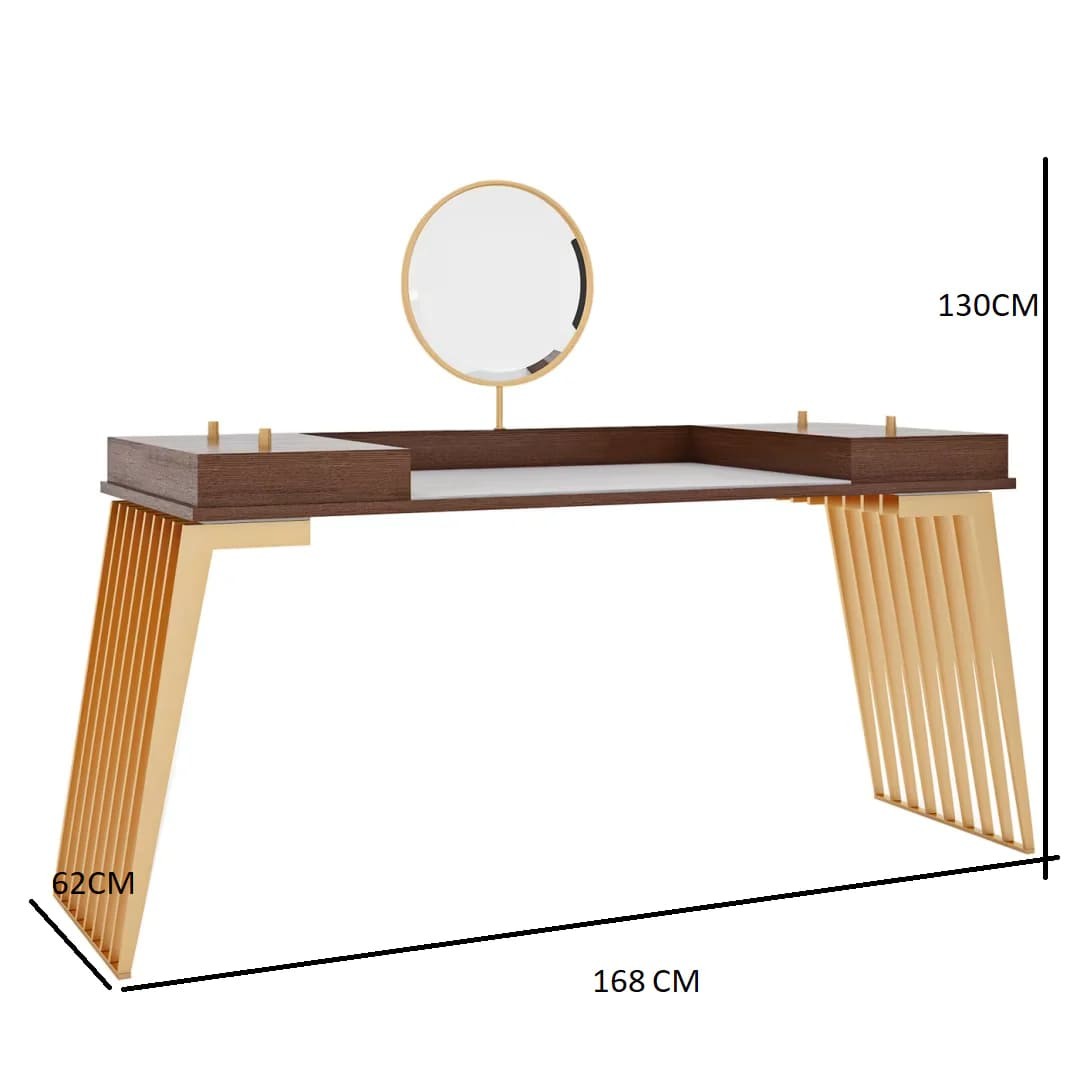 تجمع هذه التسريحة الخشبية بين الأناقة والفخامة بتصميم عصري مميز، حيث تتميز بأرجل معدنية ذهبية تتكون من قضبان رأسية تضيف لمسة راقية وتعزز من جمال القطعة داخل أي غرفة نوم. التصميم المتناسق والخطوط النظيفة تجعلها خيارًا مثاليًا لعشاق الديكور العصري والكلاسيكي على حد سواء.