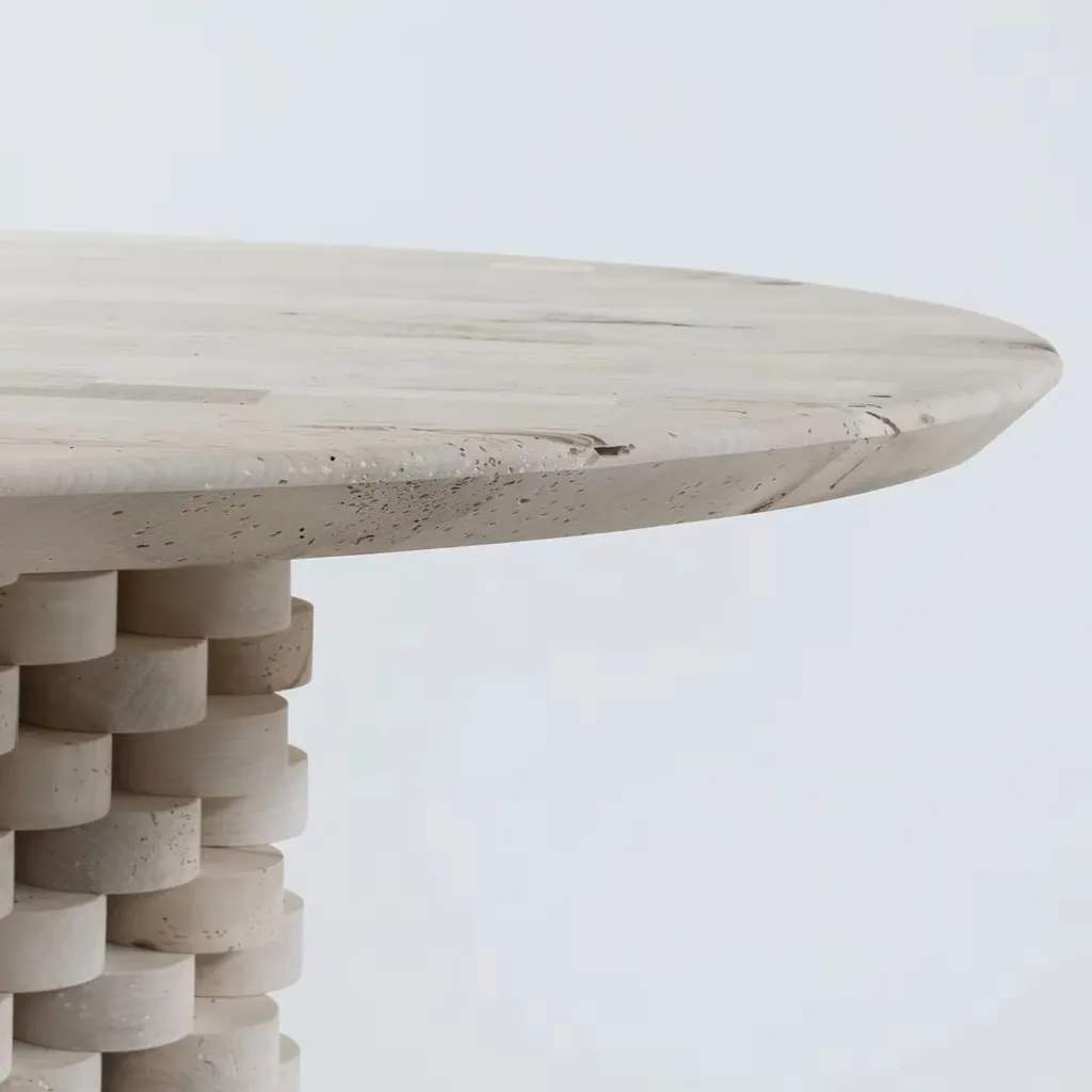 تتميز بقاعدة فريدة تتكون من مجموعة من الأشكال الدائرية المتراصة بشكل أنيق، مما يضفي عليها مظهرًا جذابًا يجعلها قطعة محورية في أي مساحة طعام. تصميمها المتوازن يجمع بين البساطة والفخامة، لتكون خيارك الأمثل لمن يبحث عن ترابيزة سفرة مستديرة تضيف لمسة عصرية مميزة.