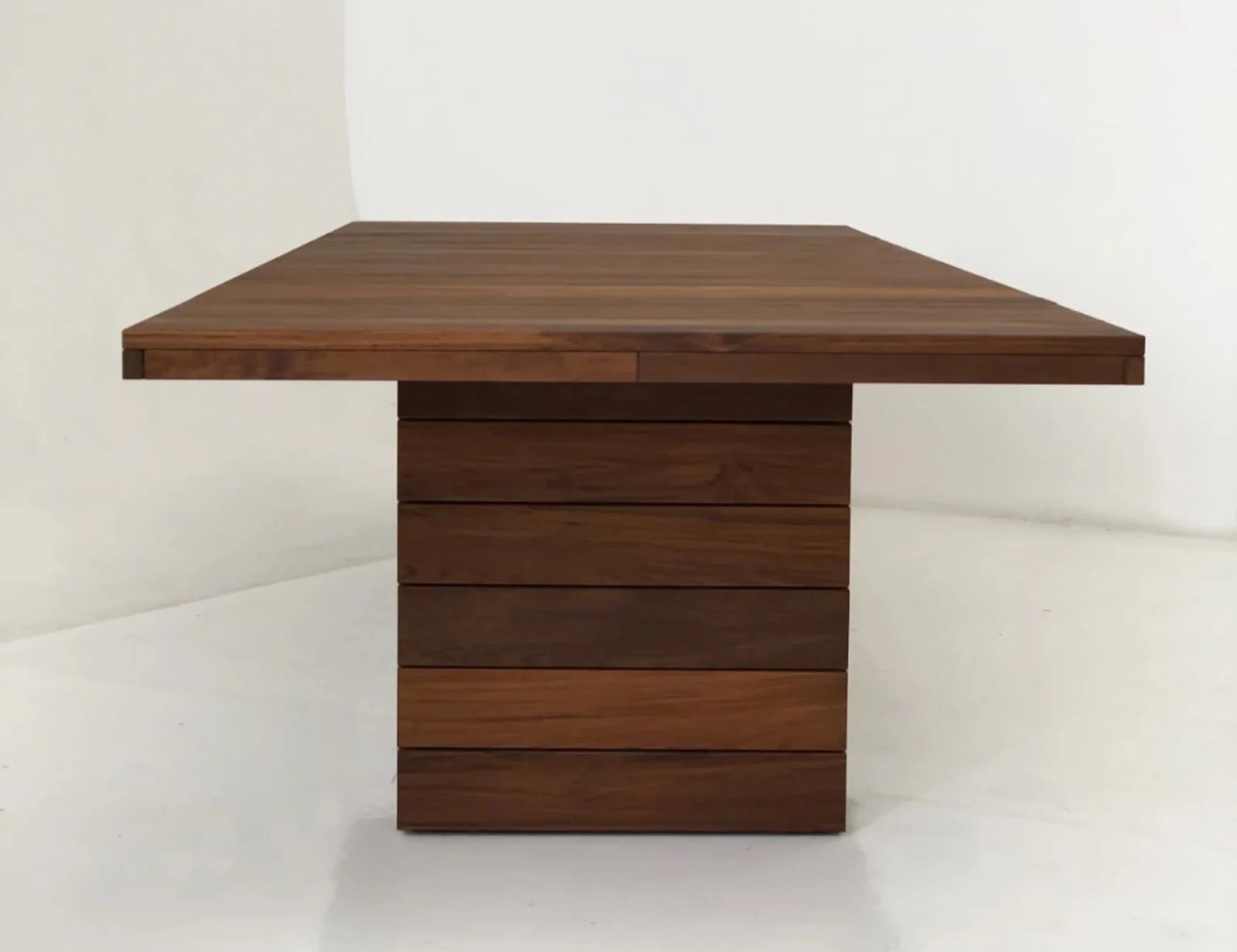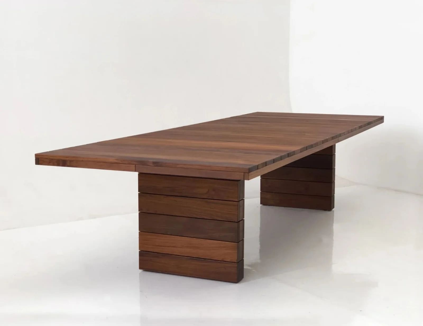 تأتي أرجل الترابيزة بتصميم مميز، مكونة من قطع خشبية مكدسة أفقيًا، مما يضيف لها طابعًا هندسيًا عصريًا وجذابًا. هذا التصميم البسيط يجعلها مثالية لمختلف الاستخدامات، سواء كـ ترابيزة سفرة حديثة أو كقطعة أنيقة في المكتب أو غرف الاجتماعات، حيث توفر توازنًا رائعًا بين الجمال والوظيفة.
