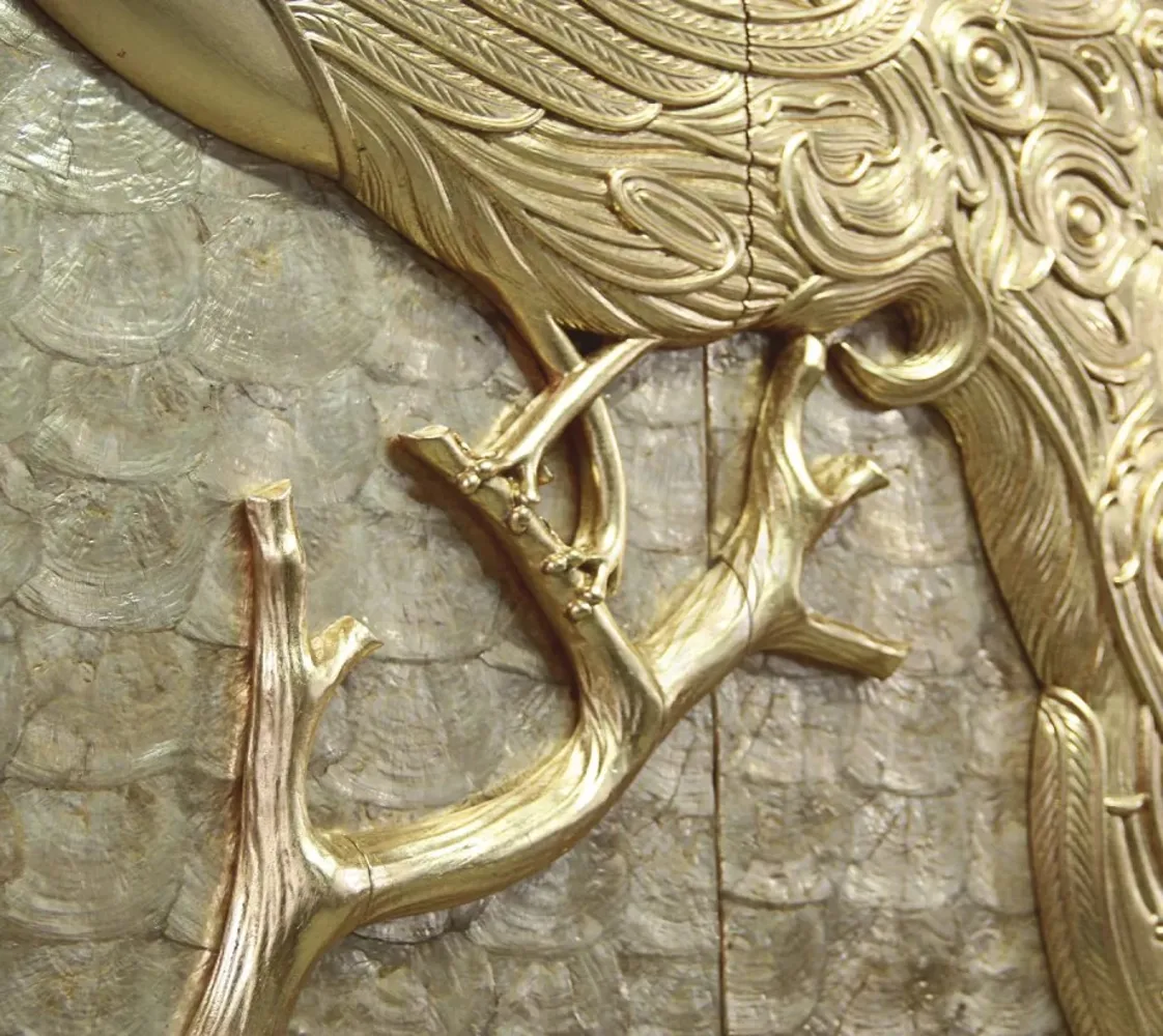 ارتقِ بديكور منزلك مع هذا الدولاب الفاخر بتصميم طاووس بارز، قطعة فنية مميزة تجمع بين الجمال العملي والفخامة الكلاسيكية. يتميز الدولاب بنقش بارز لطائر الطاووس الذهبي، يقف بأناقة على غصن شجرة، فيما يمتد ريشه ليزين الواجهة بالكامل، مما يجعله خيارًا مثاليًا لمن يبحث عن دولاب خشبي فاخر يضيف لمسة فنية راقية.