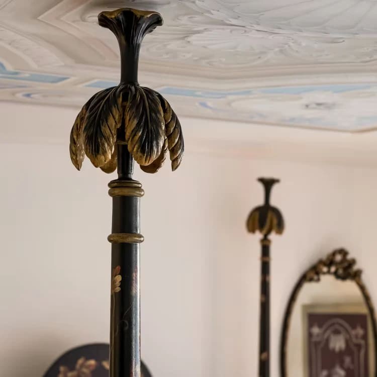 سرير كلاسيكي فاخر بأعمدة مزخرفة ولمسات ذهبية من الفولاذ المقاوم للصدأ