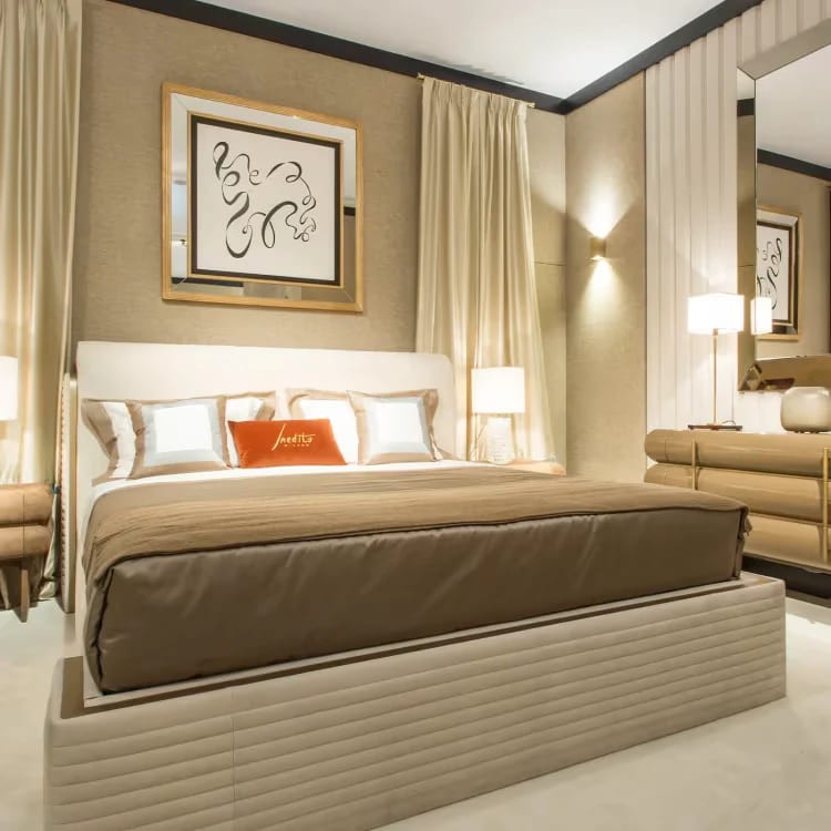 سرير عصري فاخر مصمم خصيصاً ليضيف لمسة من الفخامة والحداثة إلى غرفة نومك. يتميز بمزيج مثالي من درجات الرمادي والبيج، مع إطار خشبي قوي مزود بتفاصيل خطوط أفقية متكررة على الجوانب والقاعدة. اللوح الأمامي الكبير والمبطن بالقماش الفاخر يوفر راحة استثنائية ودعماً ممتازاً للرأس أثناء الاسترخاء. هذا السرير العصري يعد الخيار المثالي لمن يبحث عن سرير غرفة نوم يجمع بين البساطة والفخامة. يمكن اختيار الأبعاد المناسبة لك من بين خيارات العرض: 150، 160، 180، و200 سم، ما يجعله مناسباً لأي مساحة.