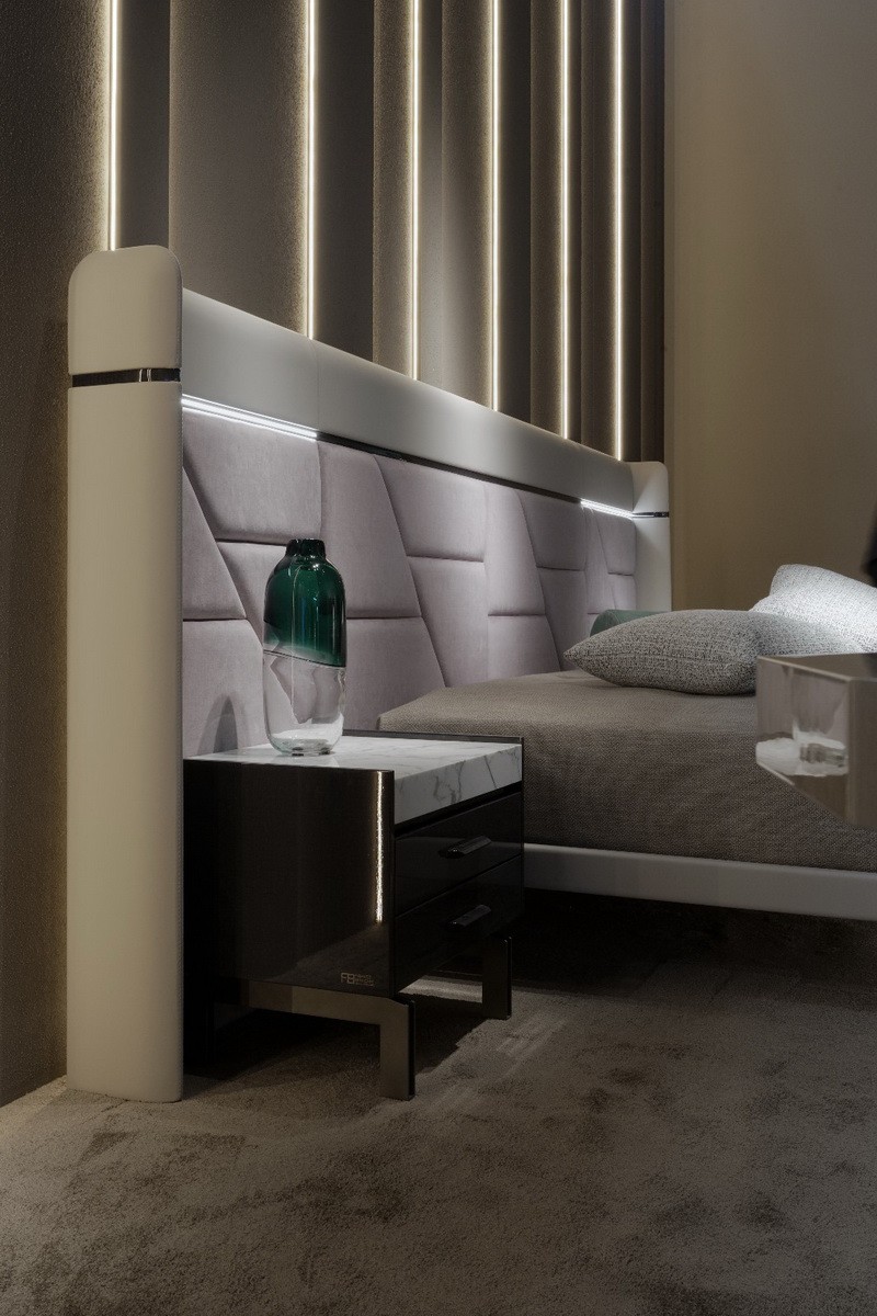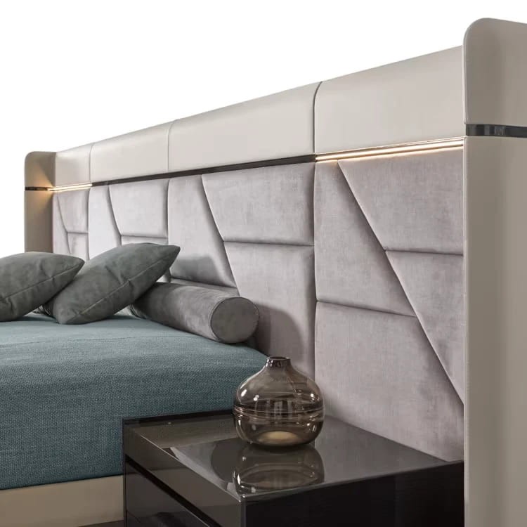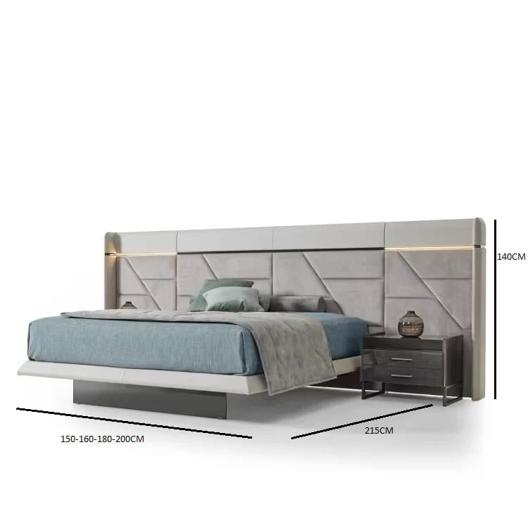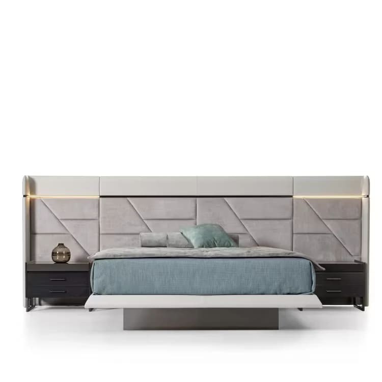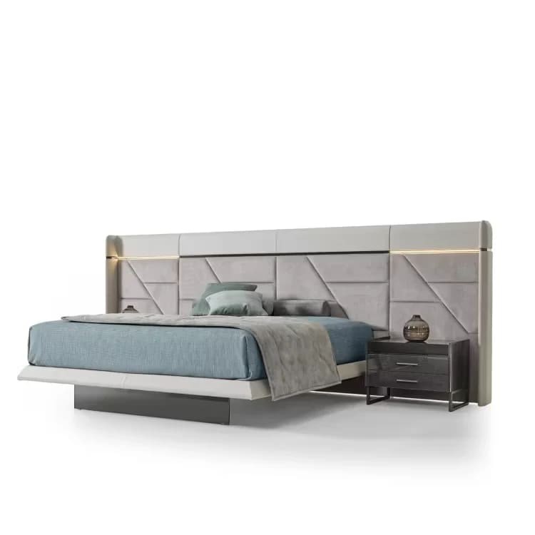 سرير عصري فاخر مع لوح أمامي ممتد وإضاءة مدمجة