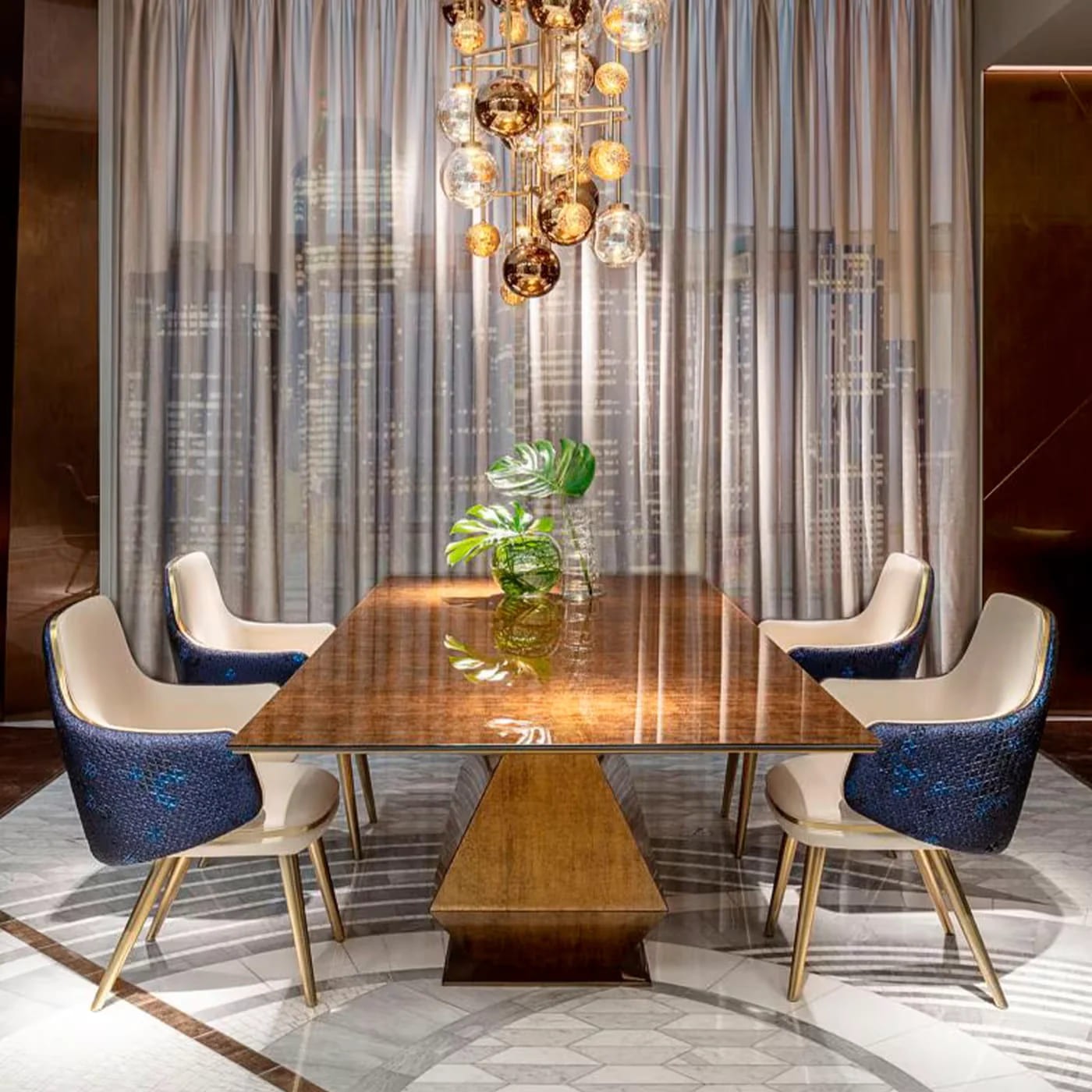 ترابيزة طعام فاخرة بتصميم هندسي – 270×120×75 سم