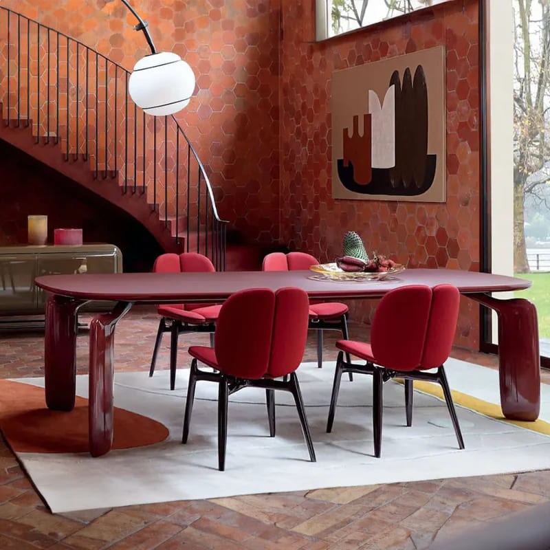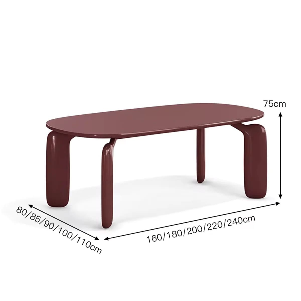 أضف لمسة من الفخامة والدفء إلى غرفة الطعام مع هذه الترابيزة العصرية الأنيقة المصنوعة من خشب طبيعي عالي الجودة بلونه الأحمر الداكن اللامع، الذي يمنحها حضورًا لافتًا وأناقة كلاسيكية متجددة. بتصميم مستطيل مع زوايا مستديرة ناعمة، تدمج هذه الترابيزة بين الانسيابية والعملية بشكل مثالي.