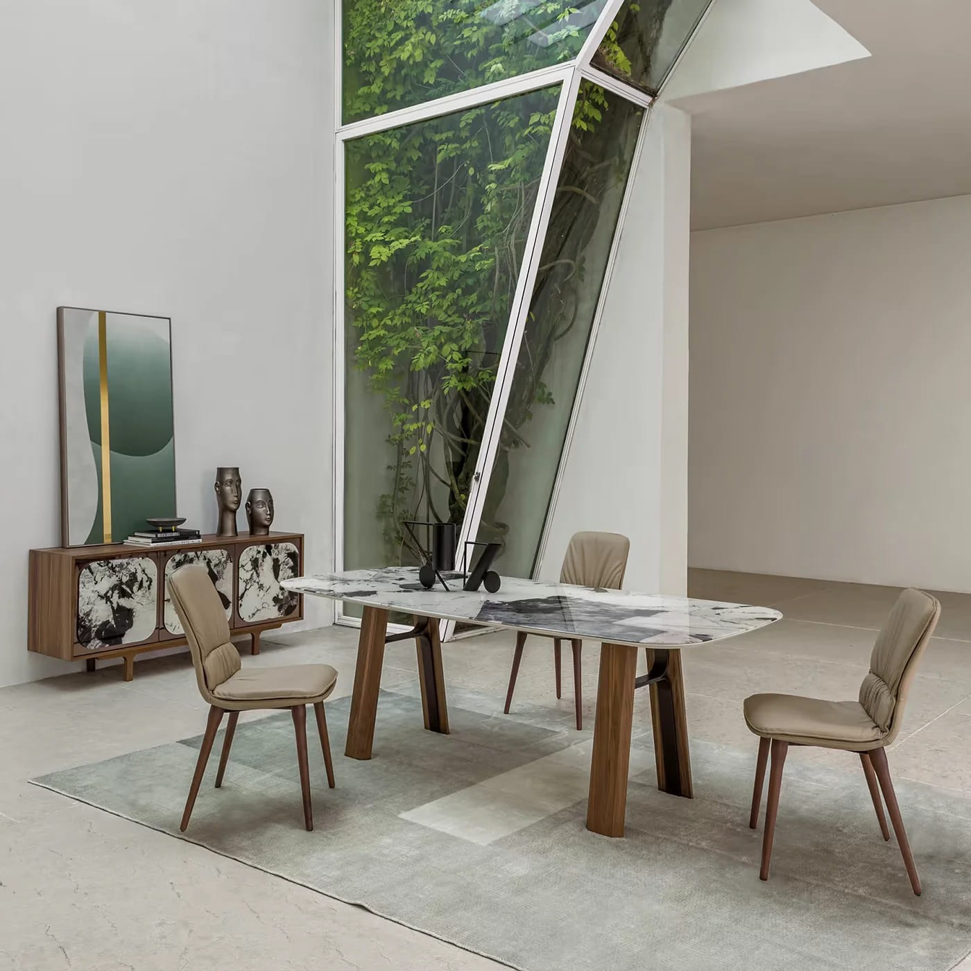 يبرز اللون البني الغني مع لمسات بيضاء لخلق تباين راقٍ يضيف لمسة فخمة على المساحة، مما يجعل هذه الطاولة مناسبة لمختلف أنماط الديكور العصري والكلاسيكي.