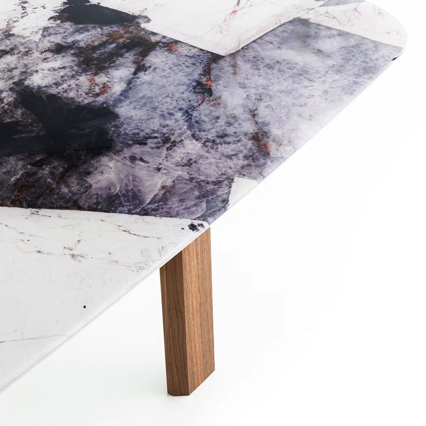 صُنعت من خشب طبيعي عالي الجودة، وتتميز بسطح مستطيل أنيق من الرخام الفاخر بحواف مشطوفة تضفي طابعًا انسيابيًا وعصريًا على التصميم. تستند على أربع أرجل خشبية منحنية قليلاً توفر ثباتًا قويًا وتوازنًا بصريًا جذابًا.