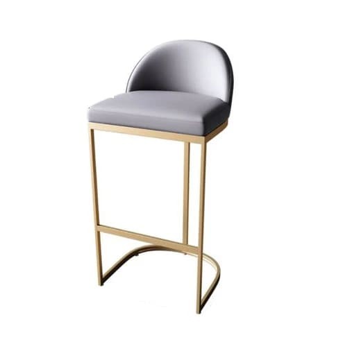 كرسي بار بتصميم عصري وهيكل معدني ذهبي مع مقعد مبطن بجلد رمادي – لمسة فخامة وأناقة عصرية
