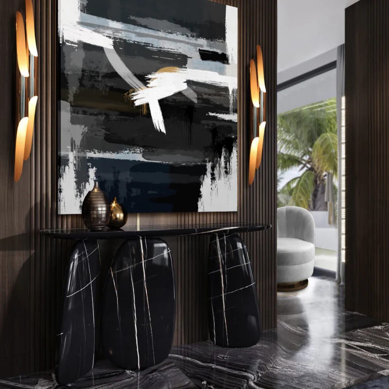 كونسول مودرن بلون أسود وذهبي – تصميم فني بلمسة فاخرة وجودة عالية