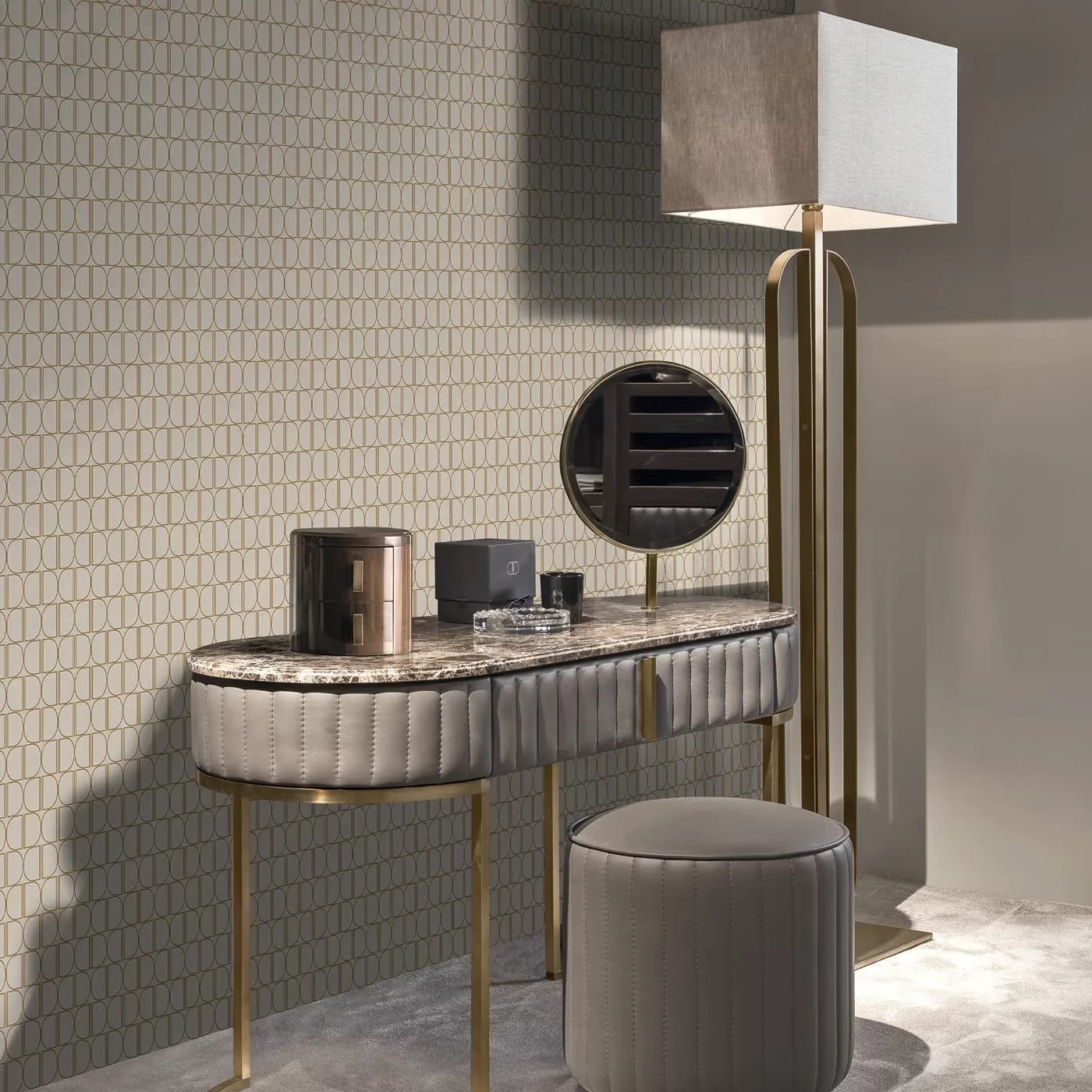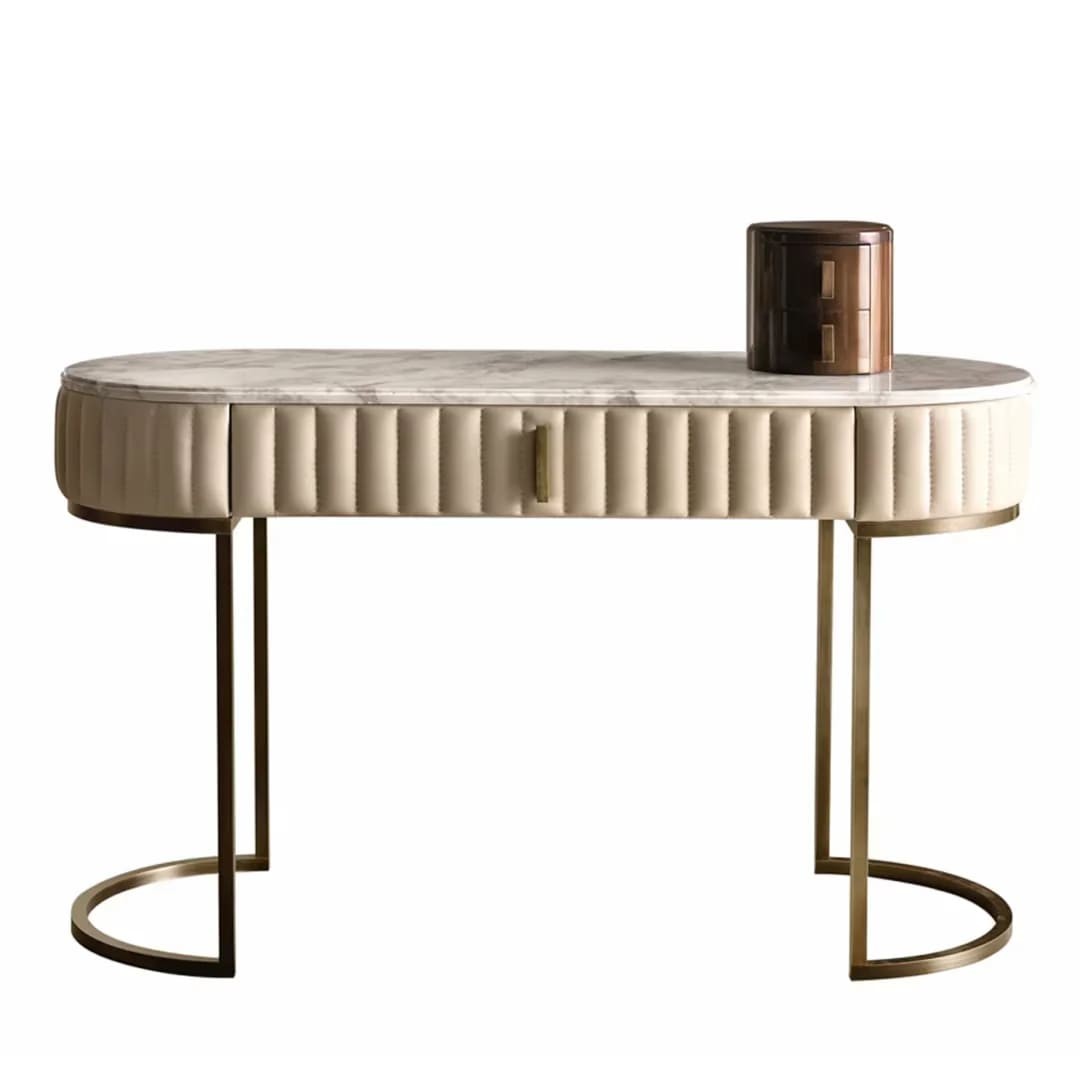 كونسول فاخر بسطح رخامي وقاعدة مبطنة – تصميم عصري أنيق